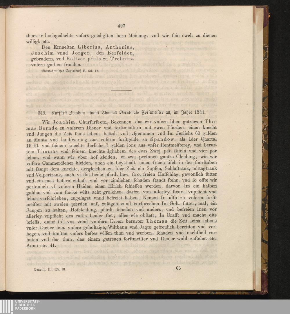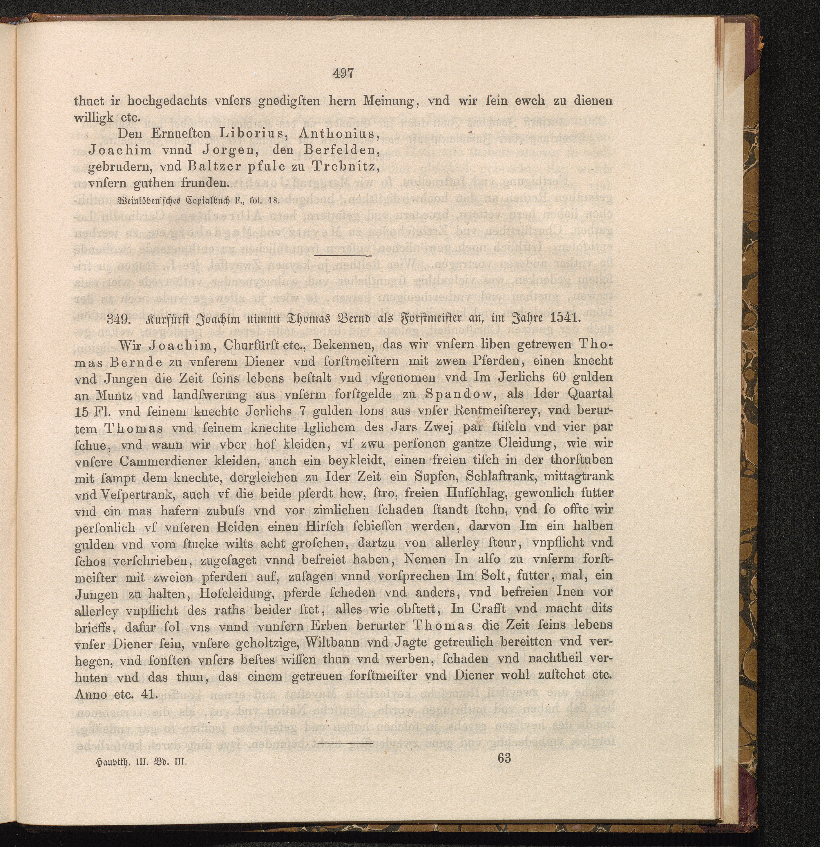 349. Kurfürst Joachim nimmt Thomas Bernd als Forstmeister an, im Jahre 1541.