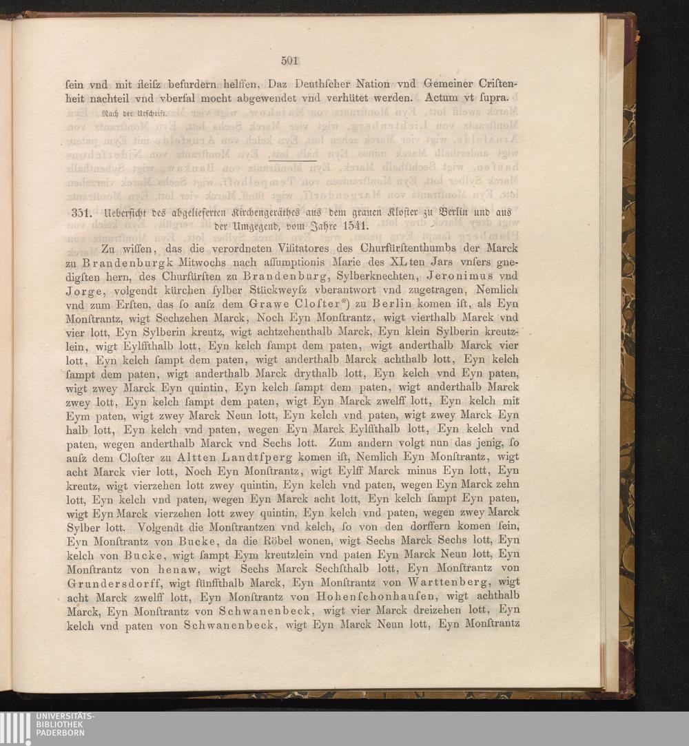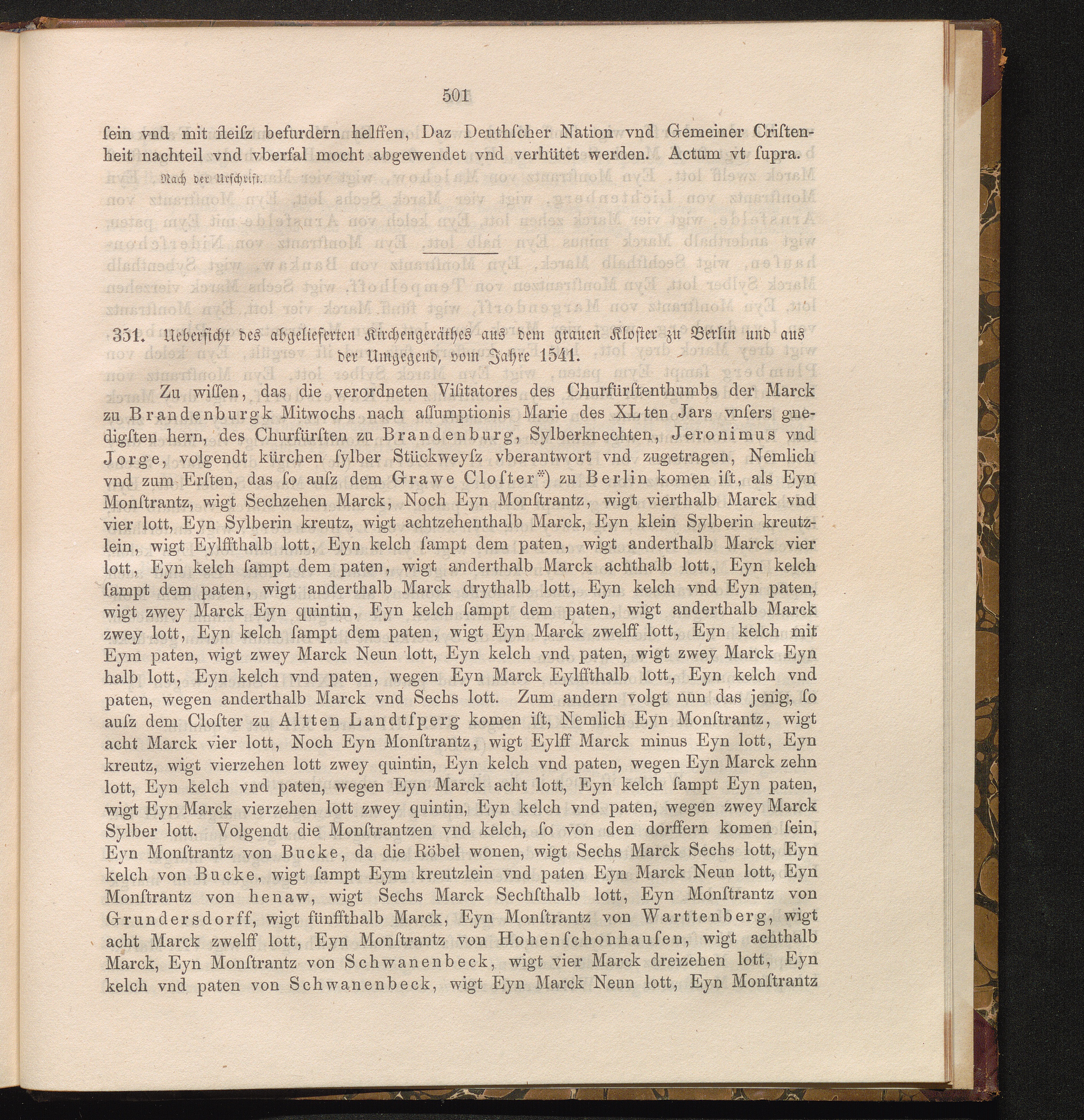 351. Uebersicht des abgelieferten Kirchengeräthes aus dem grauen Kloster zu Berlin[...]