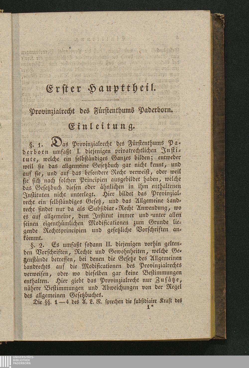 Erster Haupttheil. Provinzialrecht des Fürstenthums Paderborn.