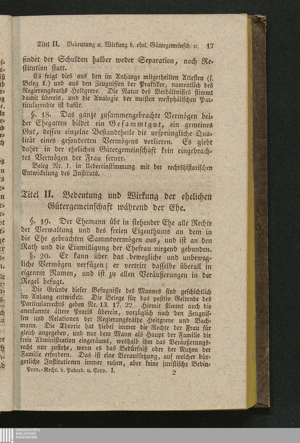Tit. II: Bedeutung und Wirkung der ehelichen Gütergemeinschaft während der Ehe