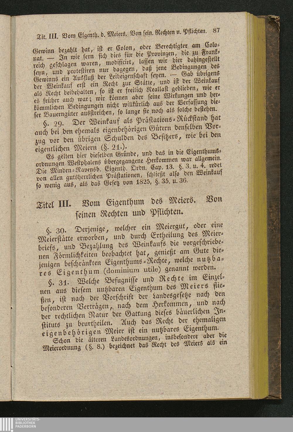 Tit. III. Vom Eigenthum des Meiers. Von seinen Rechten und Pflichten