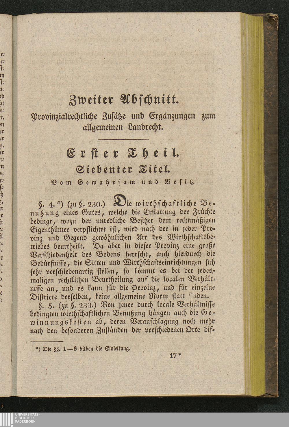 Zweiter Abschnitt. Provinzialrechtliche Zusätze und Ergänzungen zum Allgemeinen [...]