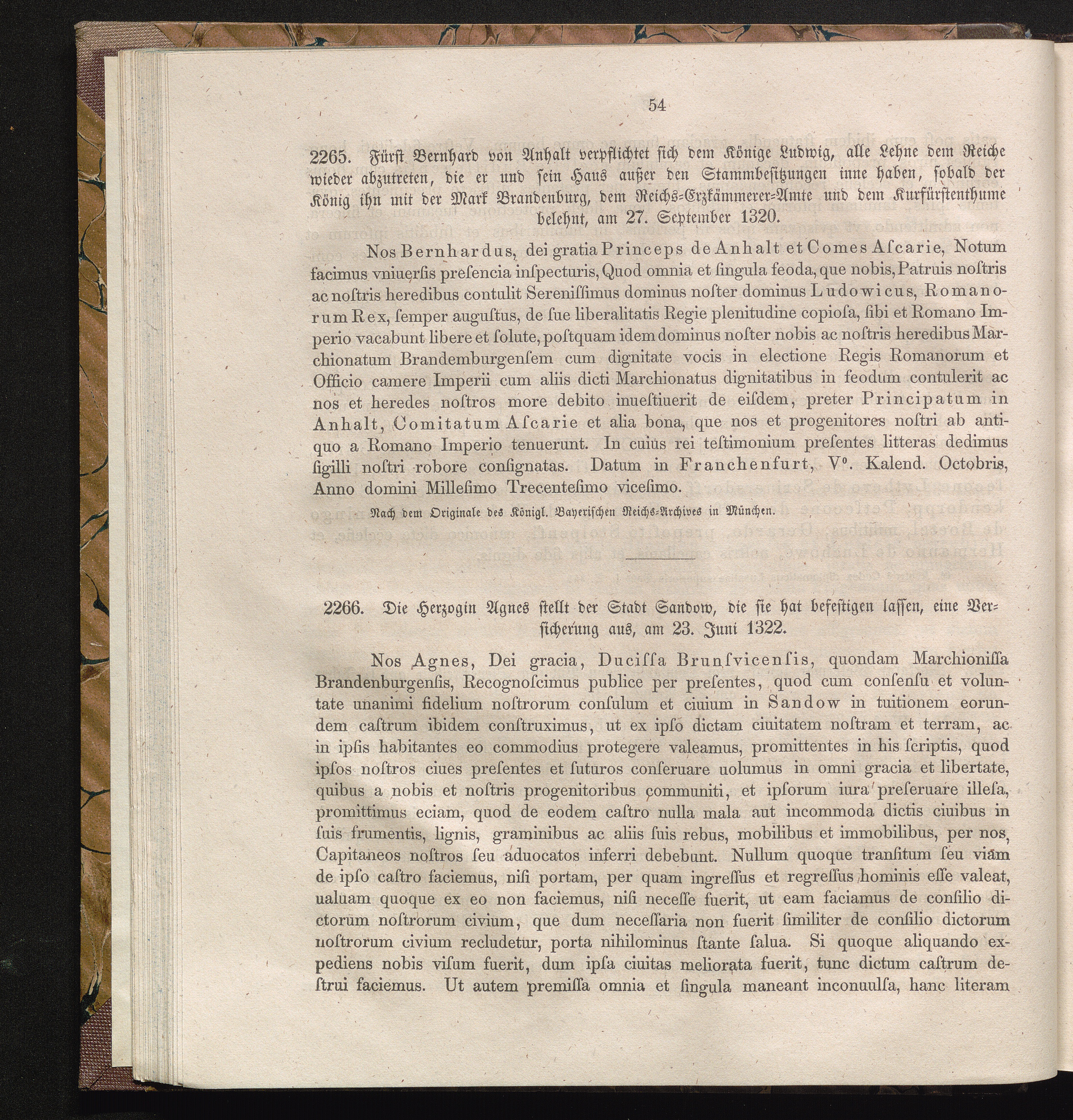 2266. Die Herzogin Agnes stellt der Stadt Sandow, die sie hat befestigen lassen,[...]