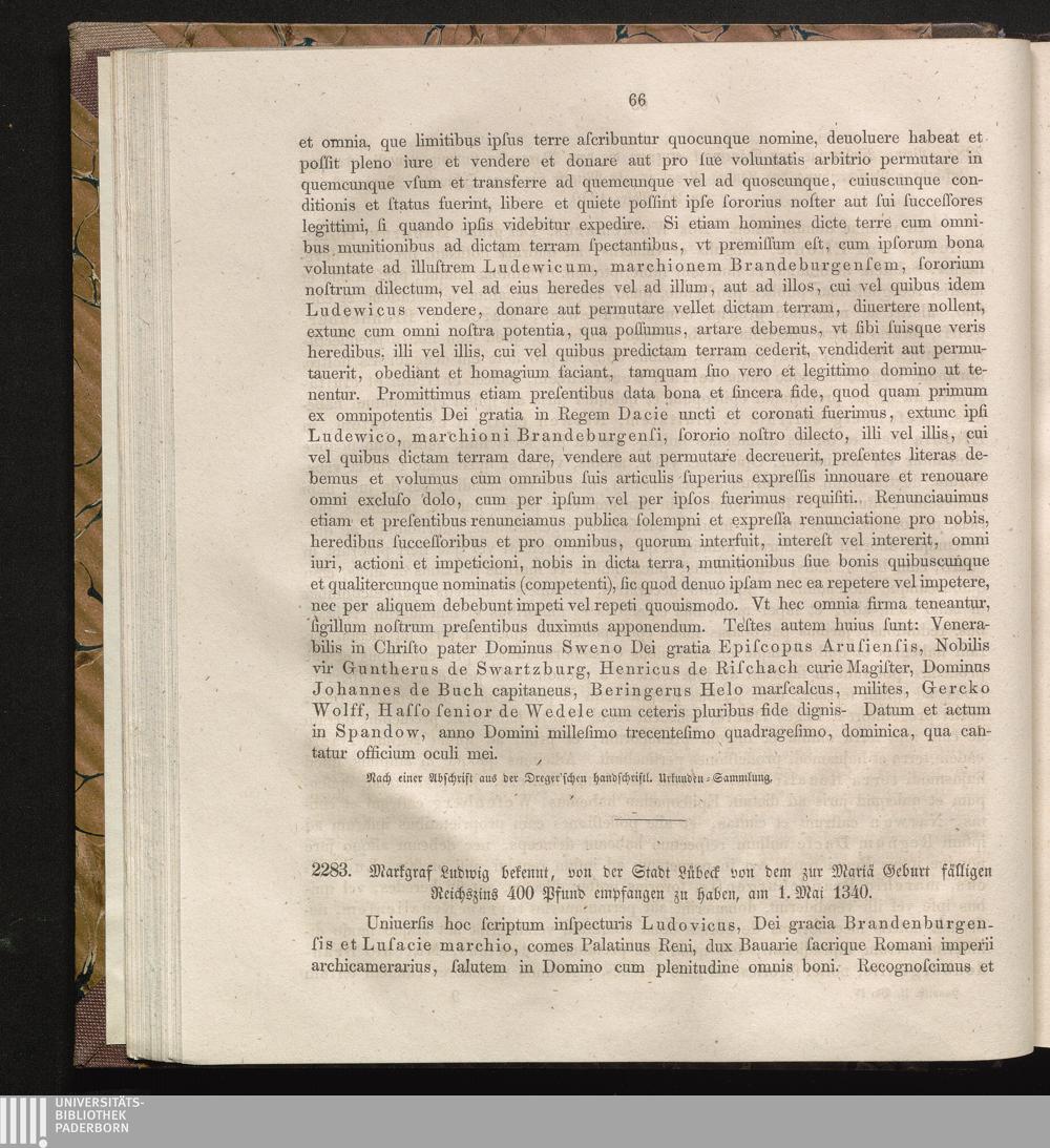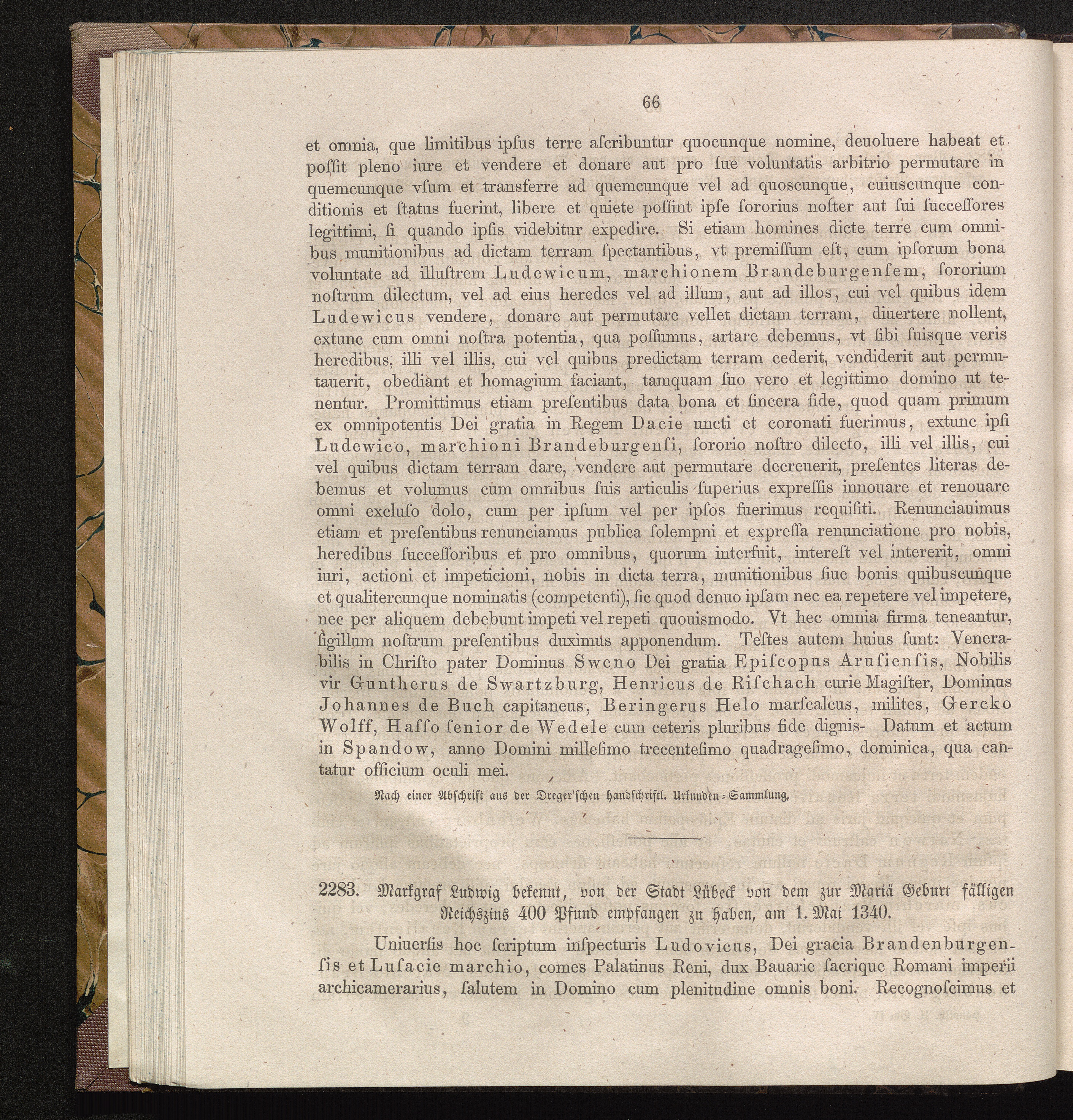 2283. Markgraf Ludwig bekennt, von der Stadt Lübeck von dem zur Maria Geburt fälligen[...]