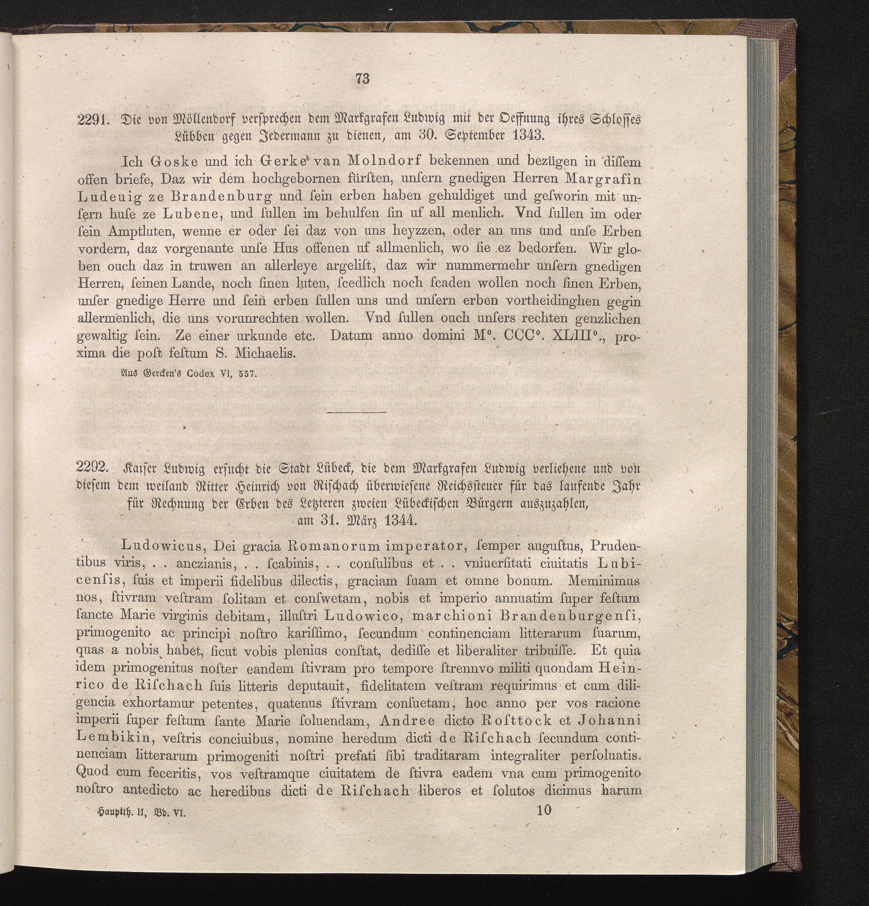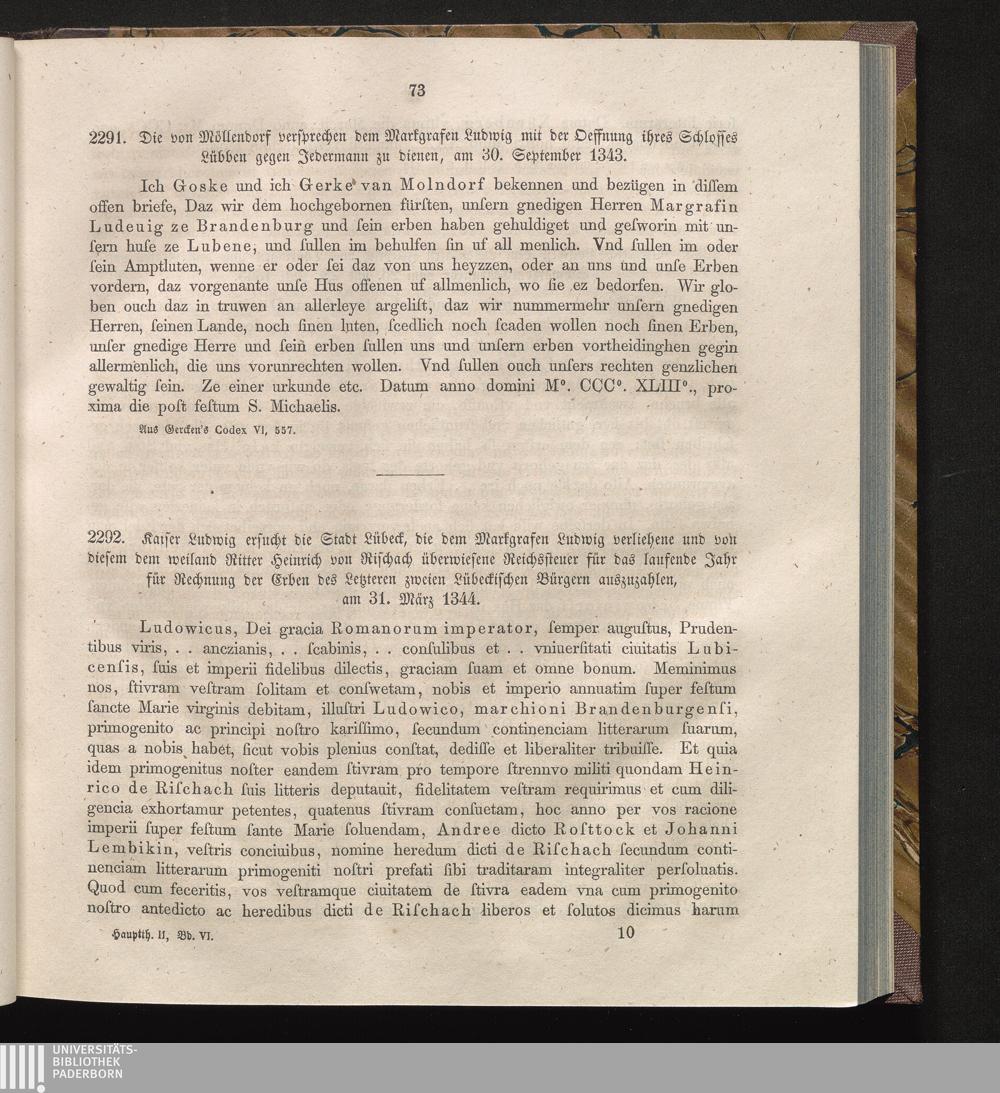 2292. Kaiser Ludwig ersucht die Stadt Lübeck, die dem Markgrafen Ludwig verliehene[...]