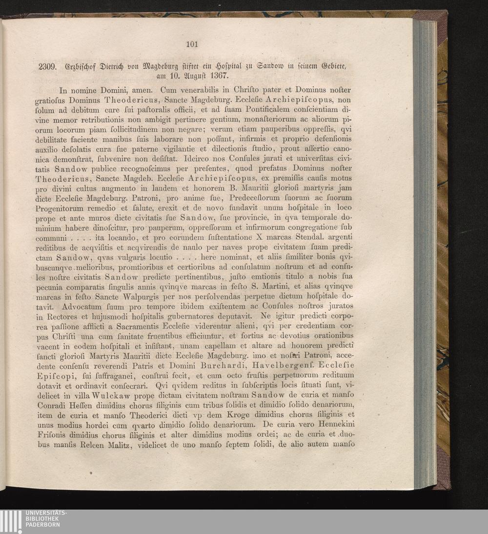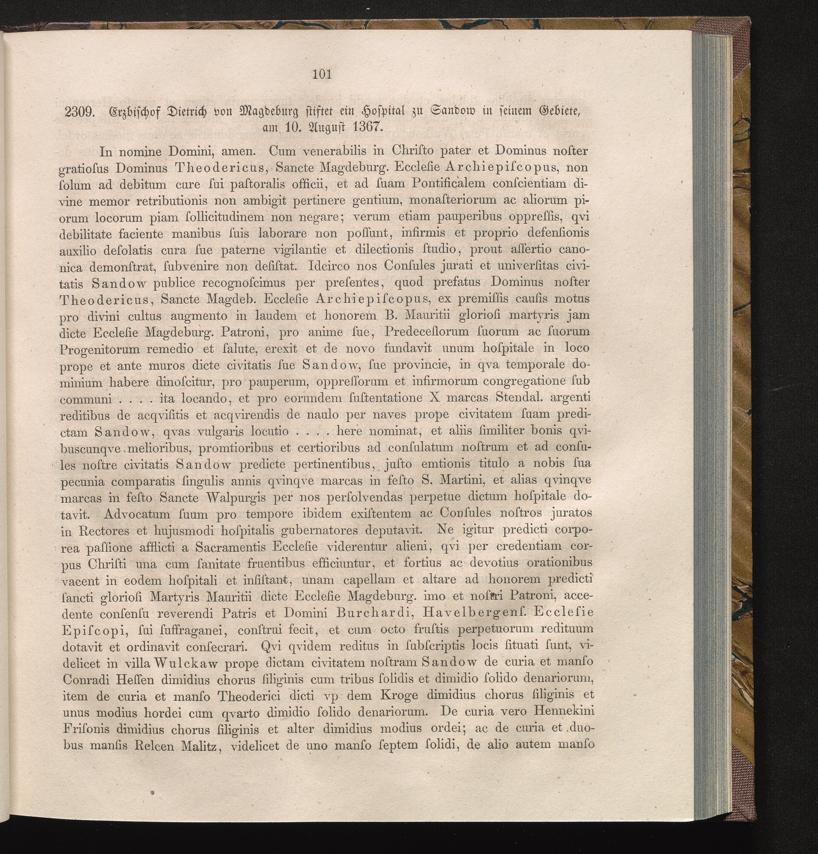 2309. Erzbischof Dietrich von Magdeburg stiftet ein Hospital zu Sandow in seinem[...]