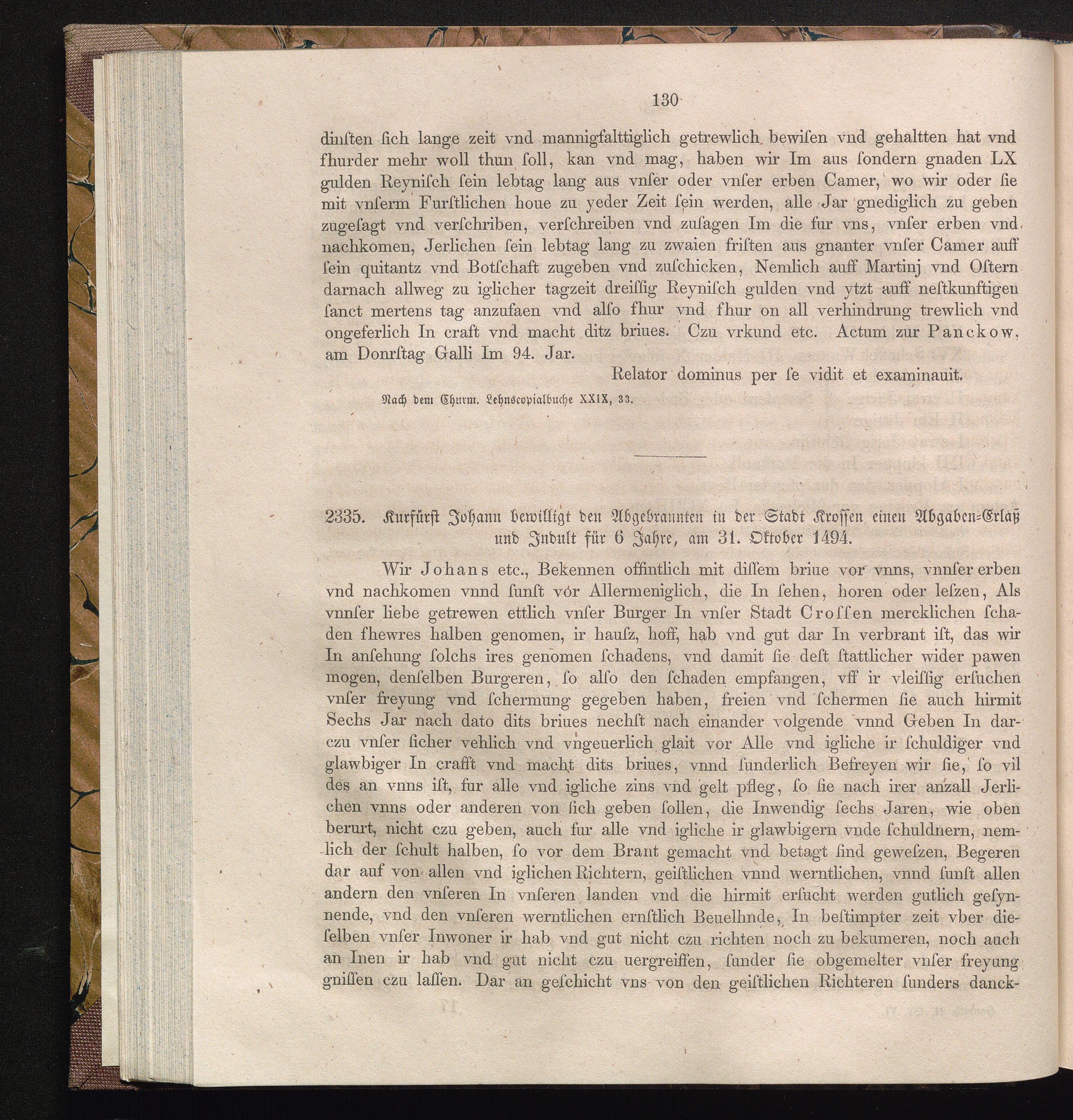 2335. Kurfürst Johann bewilligt den Abgebrannten in der Stadt Krossen einen Abgaben-Erlaß[...]