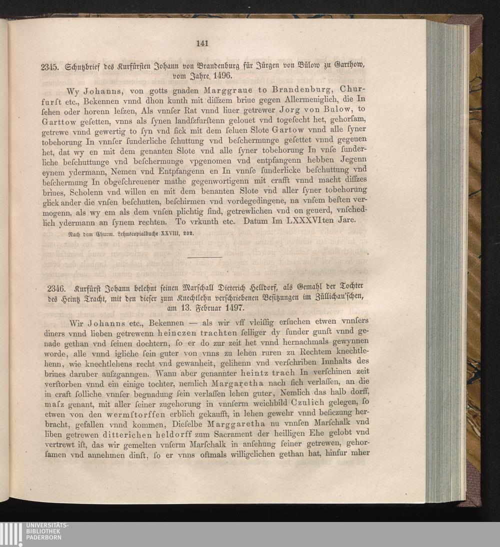 2346. Kurfürst Johann belehnt seinen Marschall Dieterich Helldorf, als Gemahl der[...]