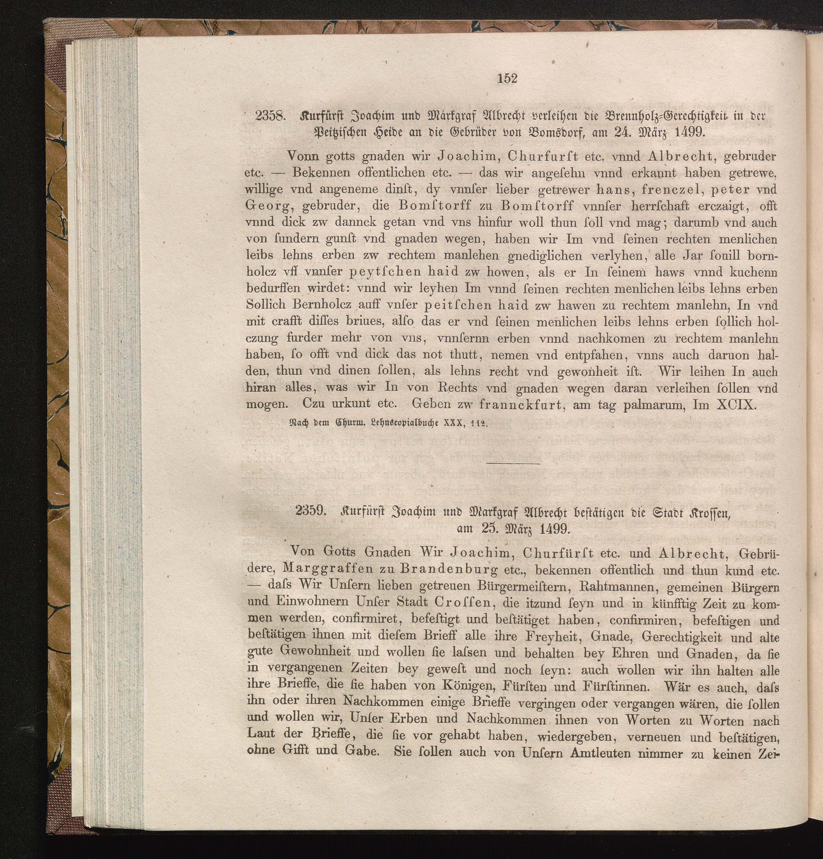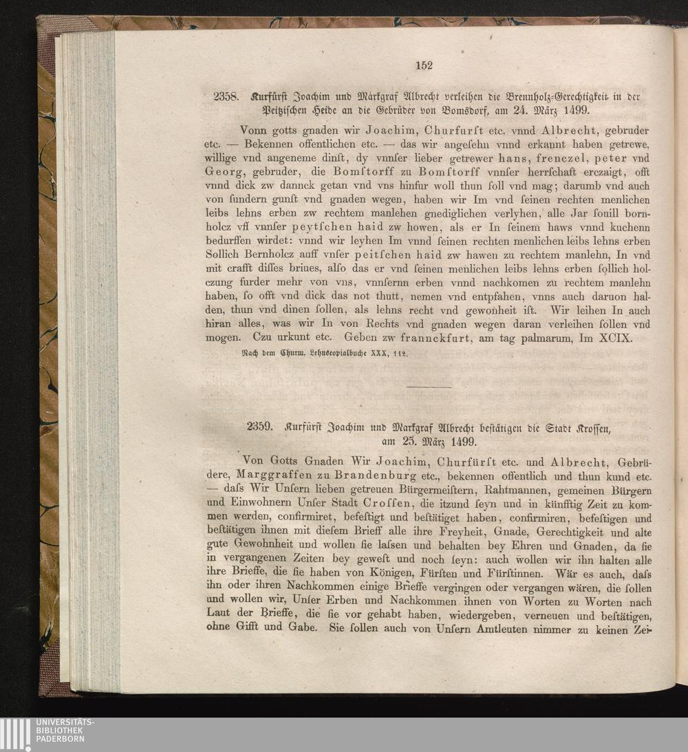 2359. Kurfürst Joachim und Markgraf Albrecht bestätigen die Stadt Krossen, am 25.[...]