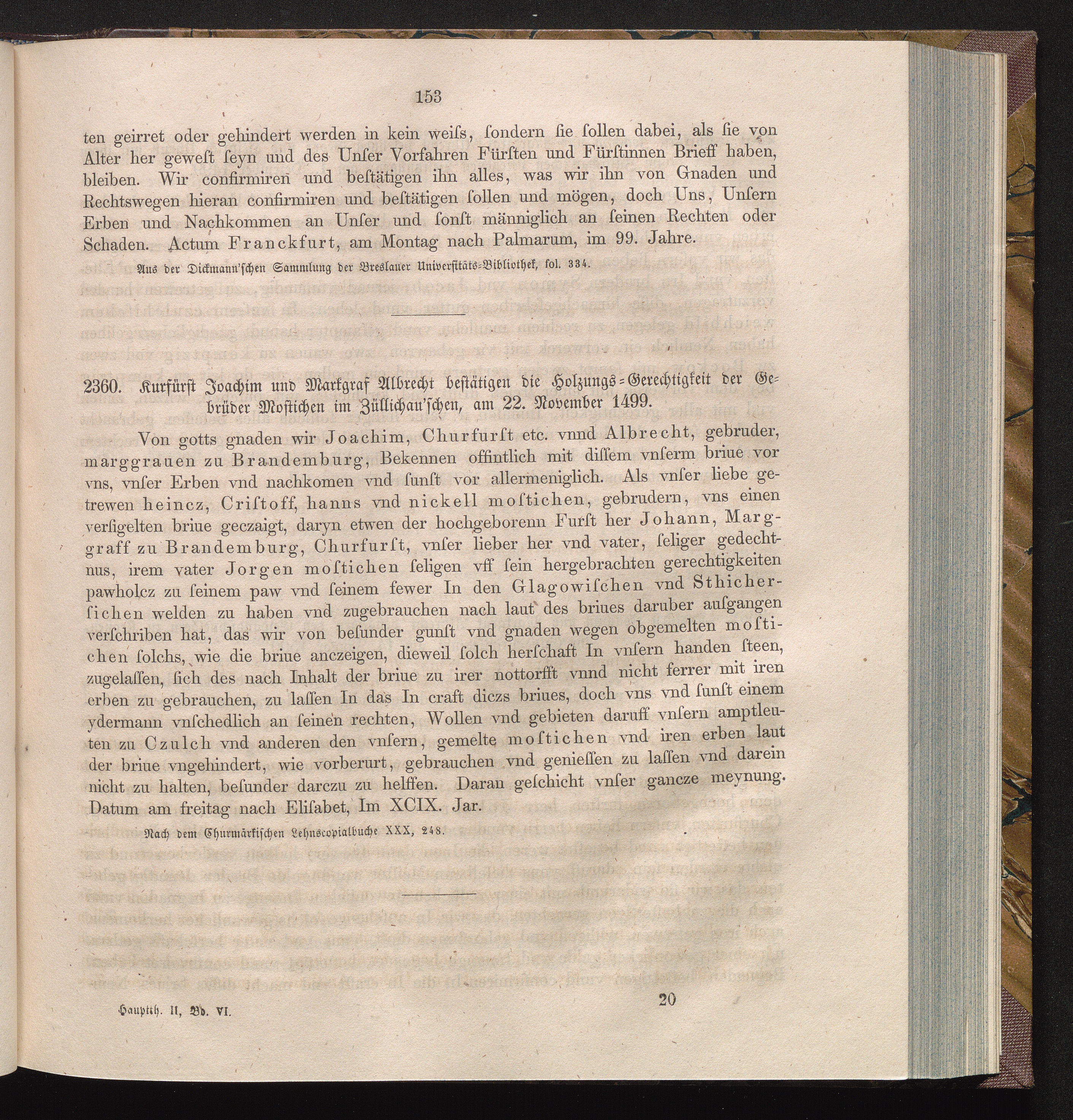 2360. Kurfürst Joachim und Markgraf Albrecht, bestätigen die Holzungs-Gerechtigkeit[...]