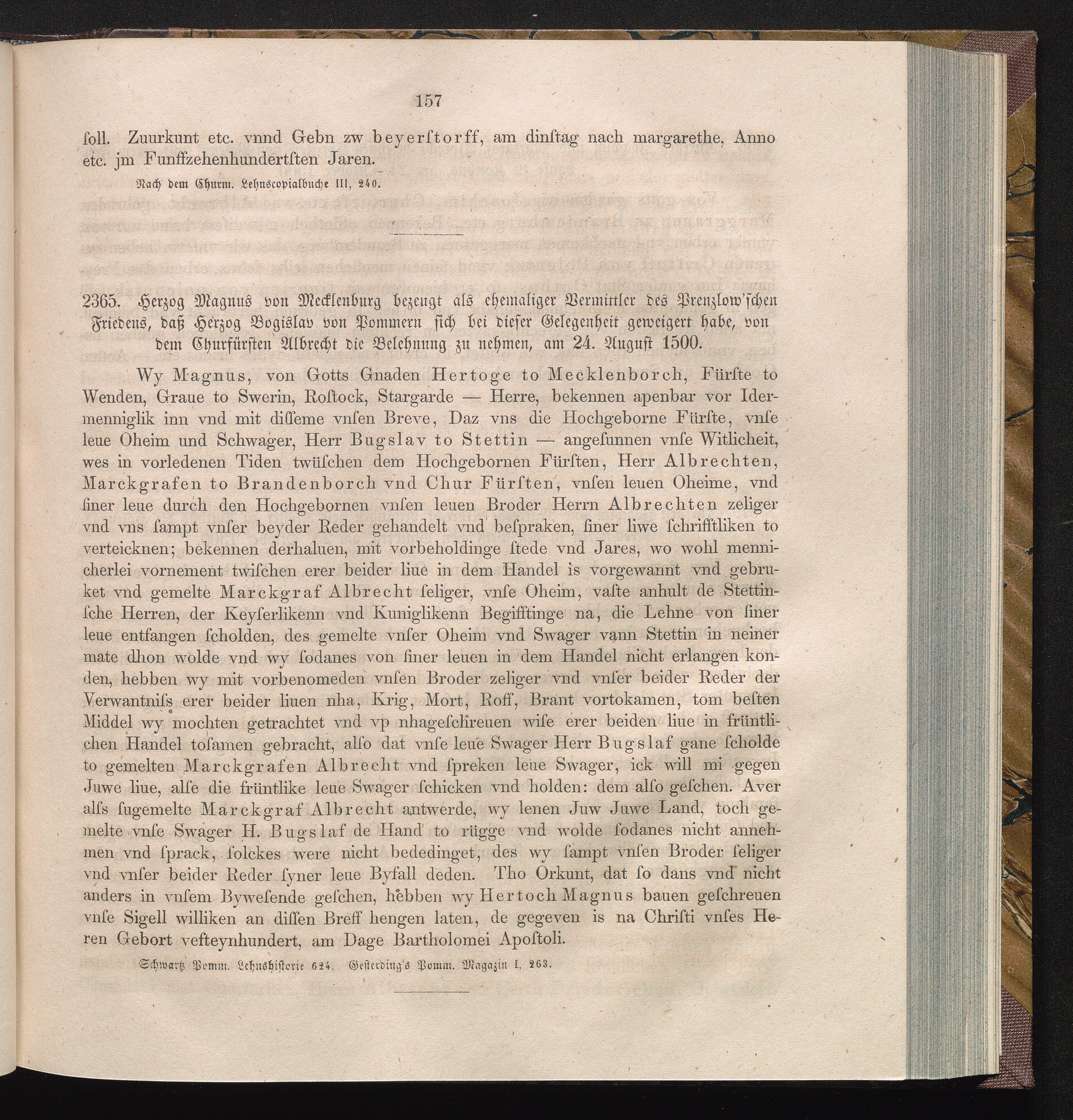 2365. Herzog Magnus von Mecklenburg bezeugt als ehemaliger Vermittler des Prenzlow`schen[...]