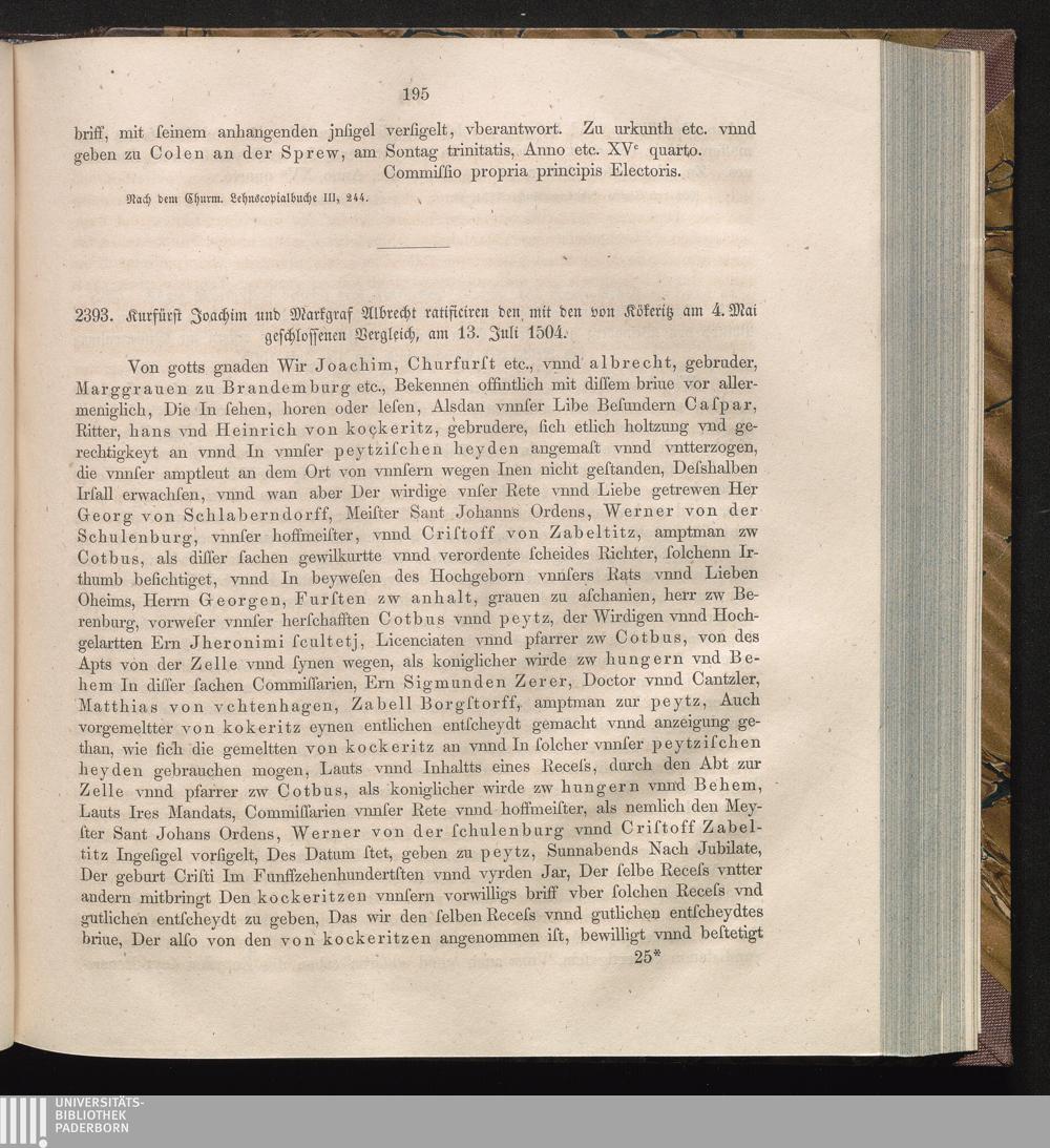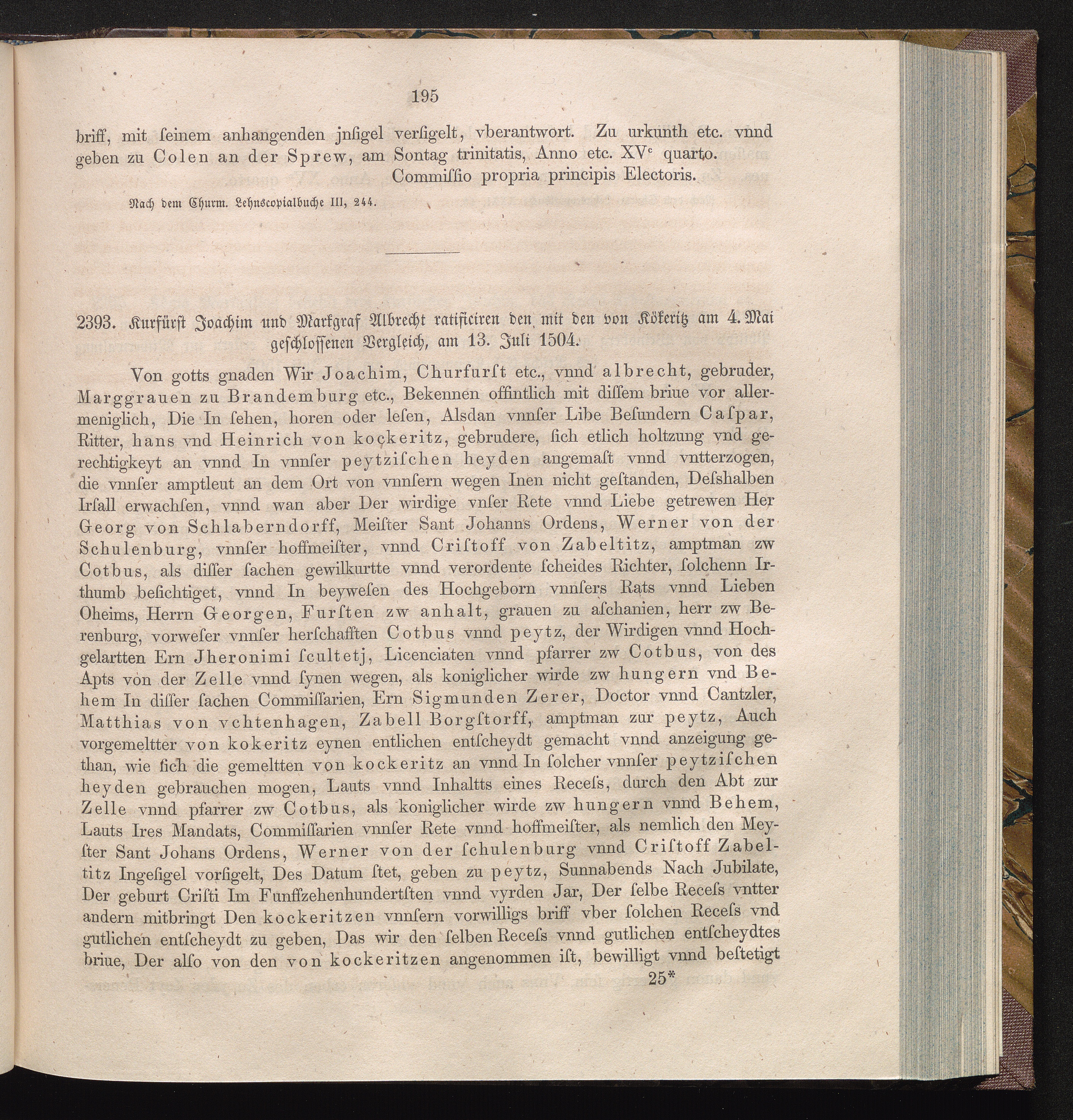 2393. Kurfürst Joachim und Markgraf Albrecht ratificiren den mit den von Kökeritz[...]
