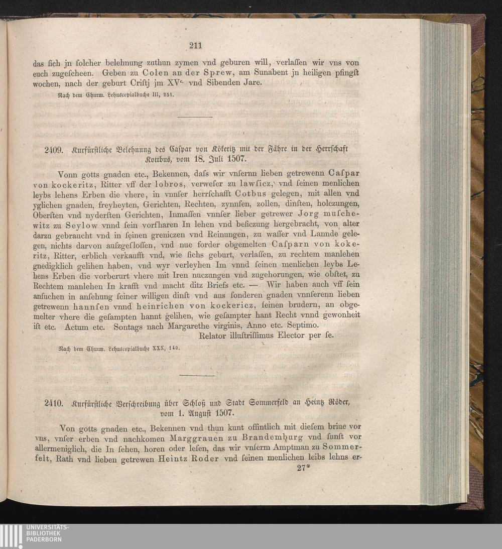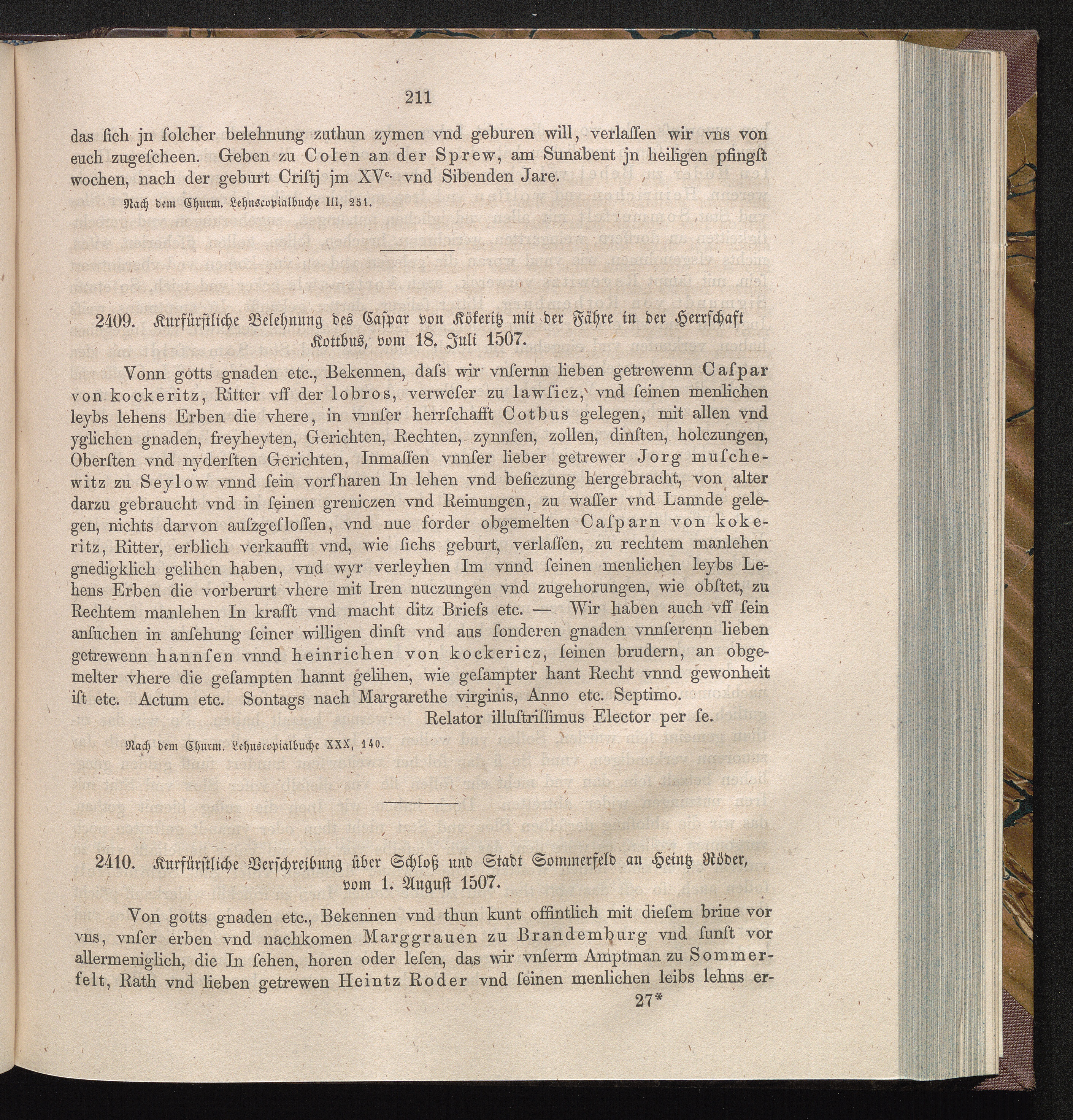 2410. Kurfürstliche Verschreibung über Schloß und Stadt Sommerfeld an Heinz Röder,[...]