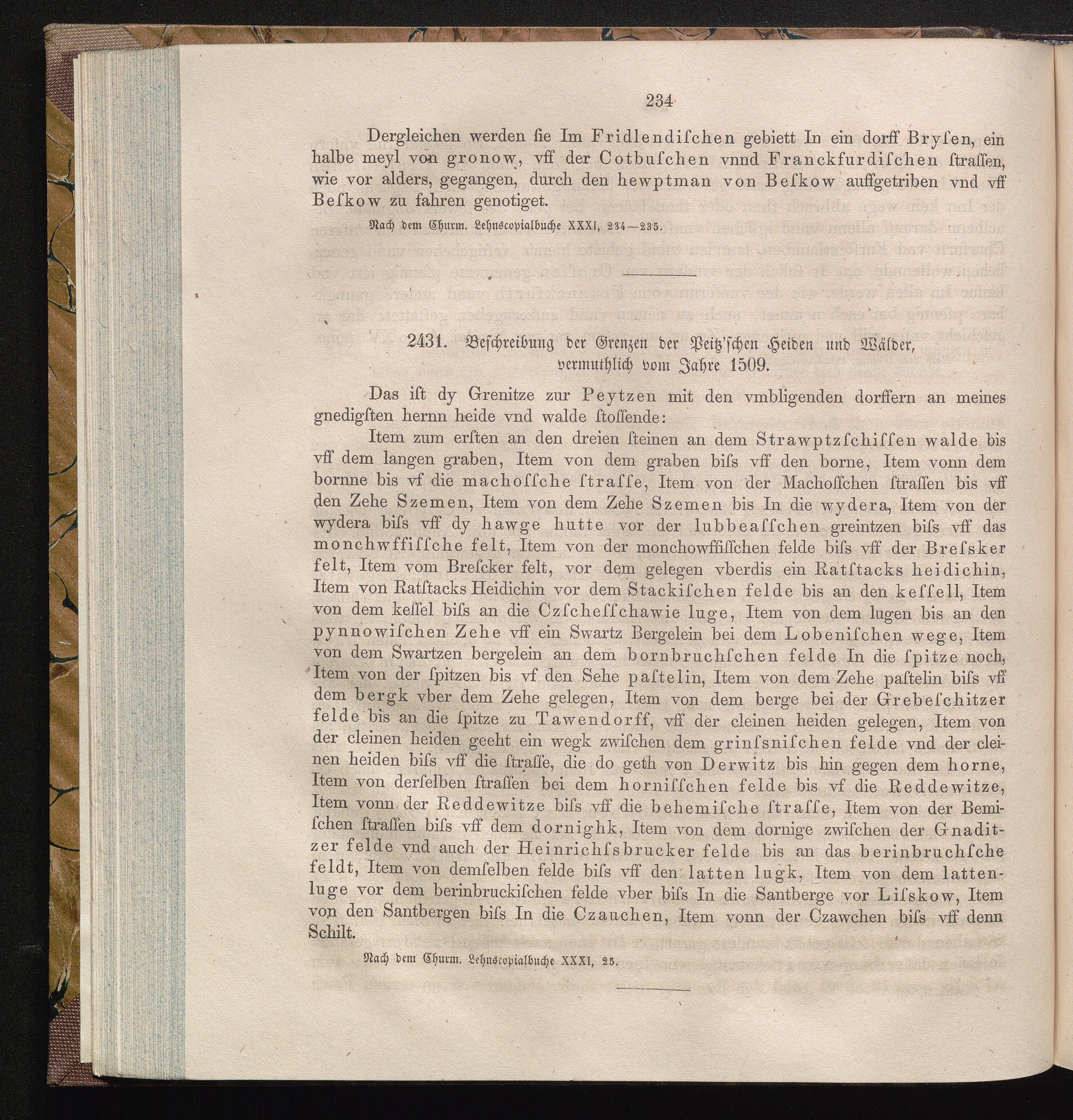 2431. Beschreibung der Grenzen der Peitz`schen Heiden und Wälder, vermuthlich vom[...]