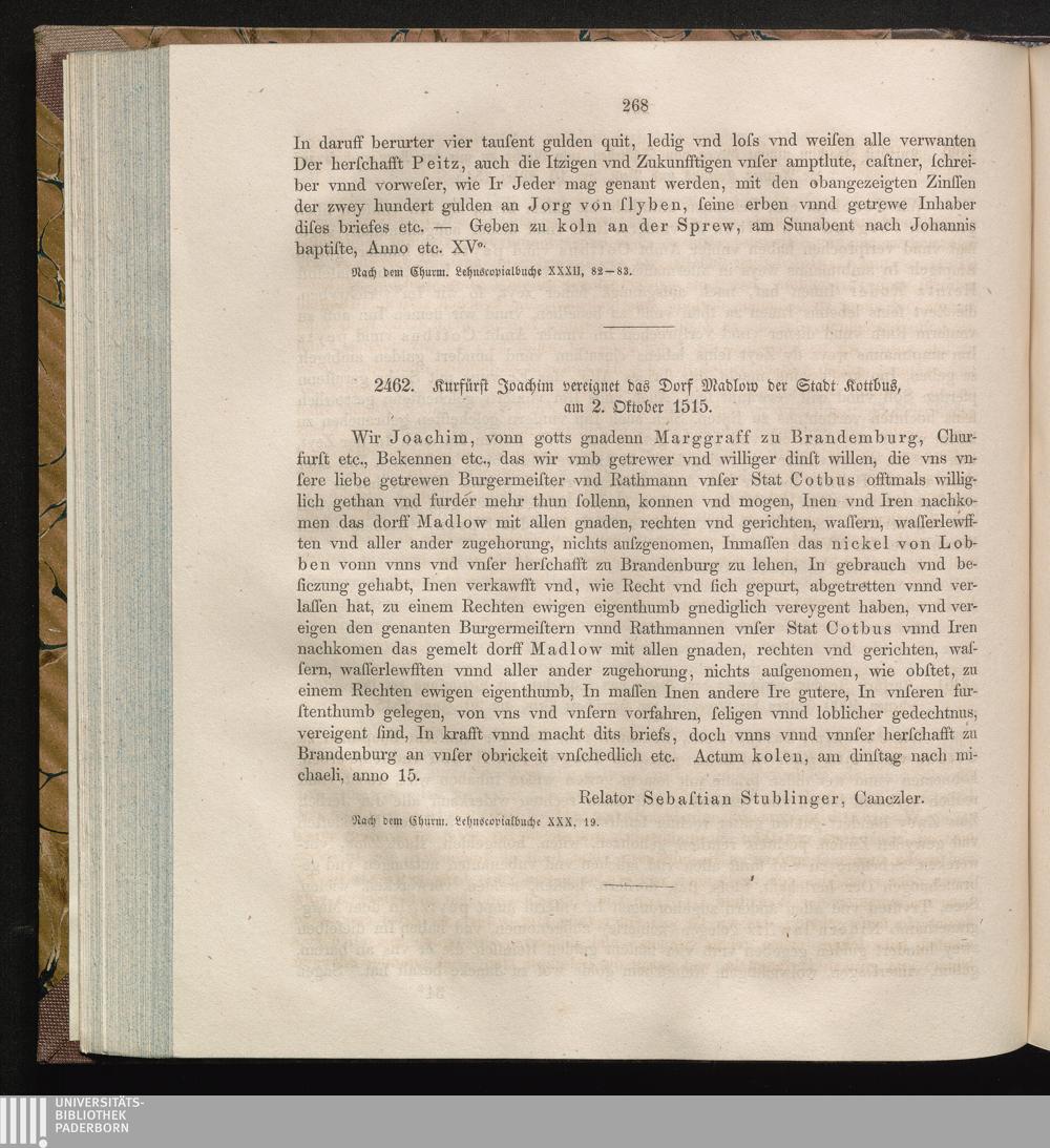 2462. Kurfürst Joachim vereignet das Dorf Madlow der Stadt Kottbus, am 2. Oktober[...]