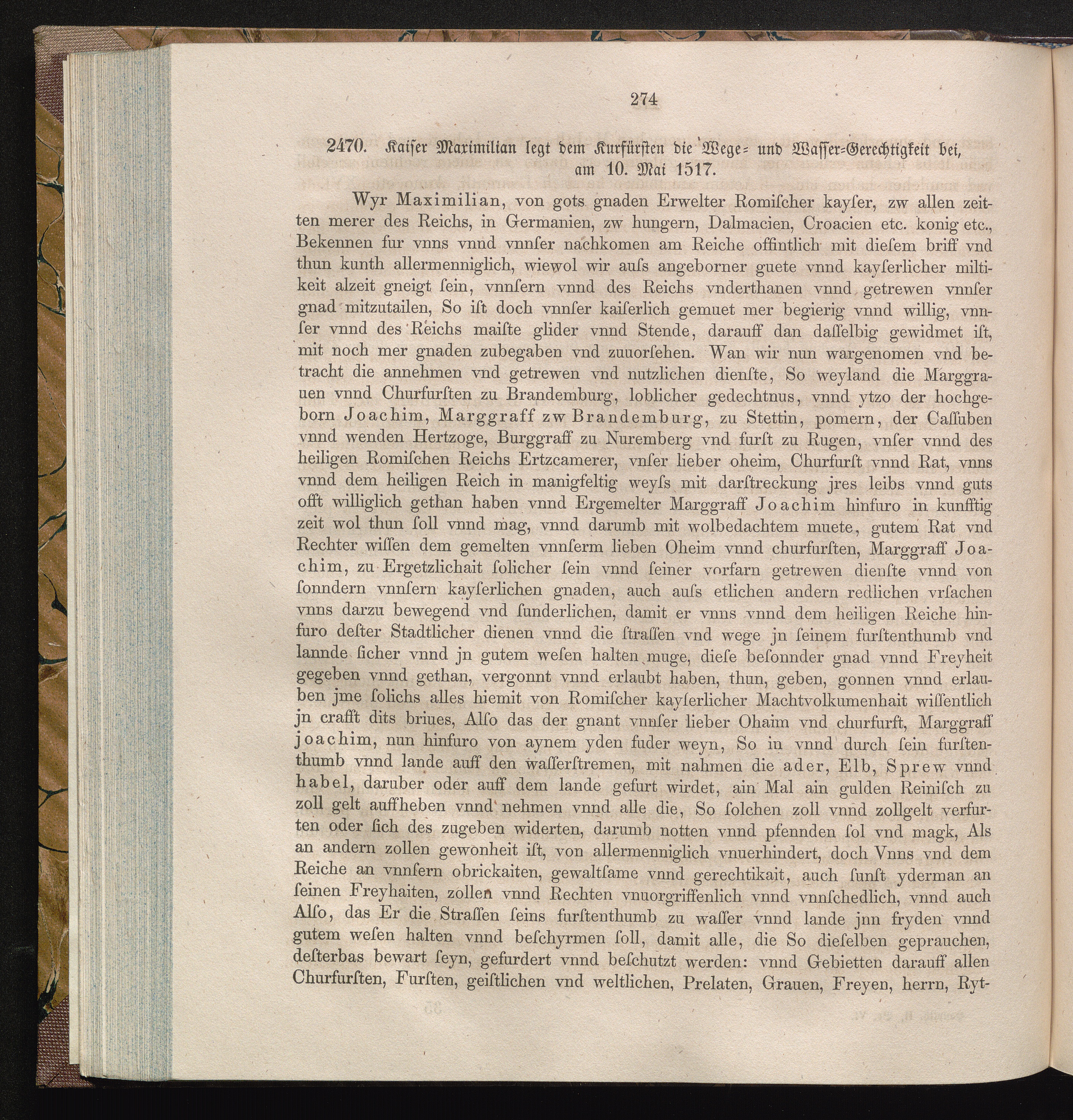 2470. Kaiser Maximilian legt dem Kurfürsten die Wege- und Wasser-Gerechtigkeit bei,[...]