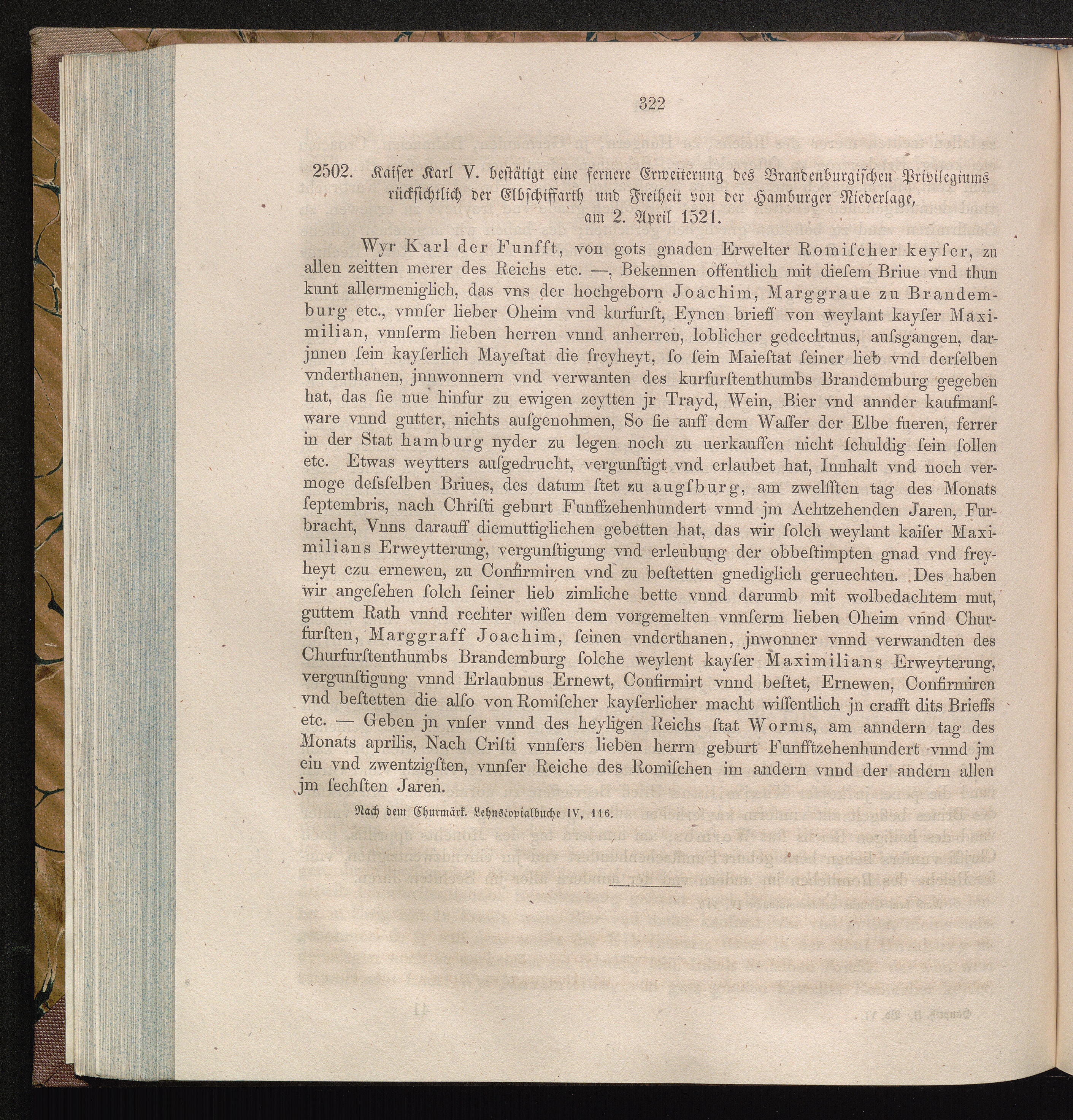 2502. Kaiser Karl V. bestätigt eine fernere Erweiterung des Brandenburgischen Privilegiums[...]