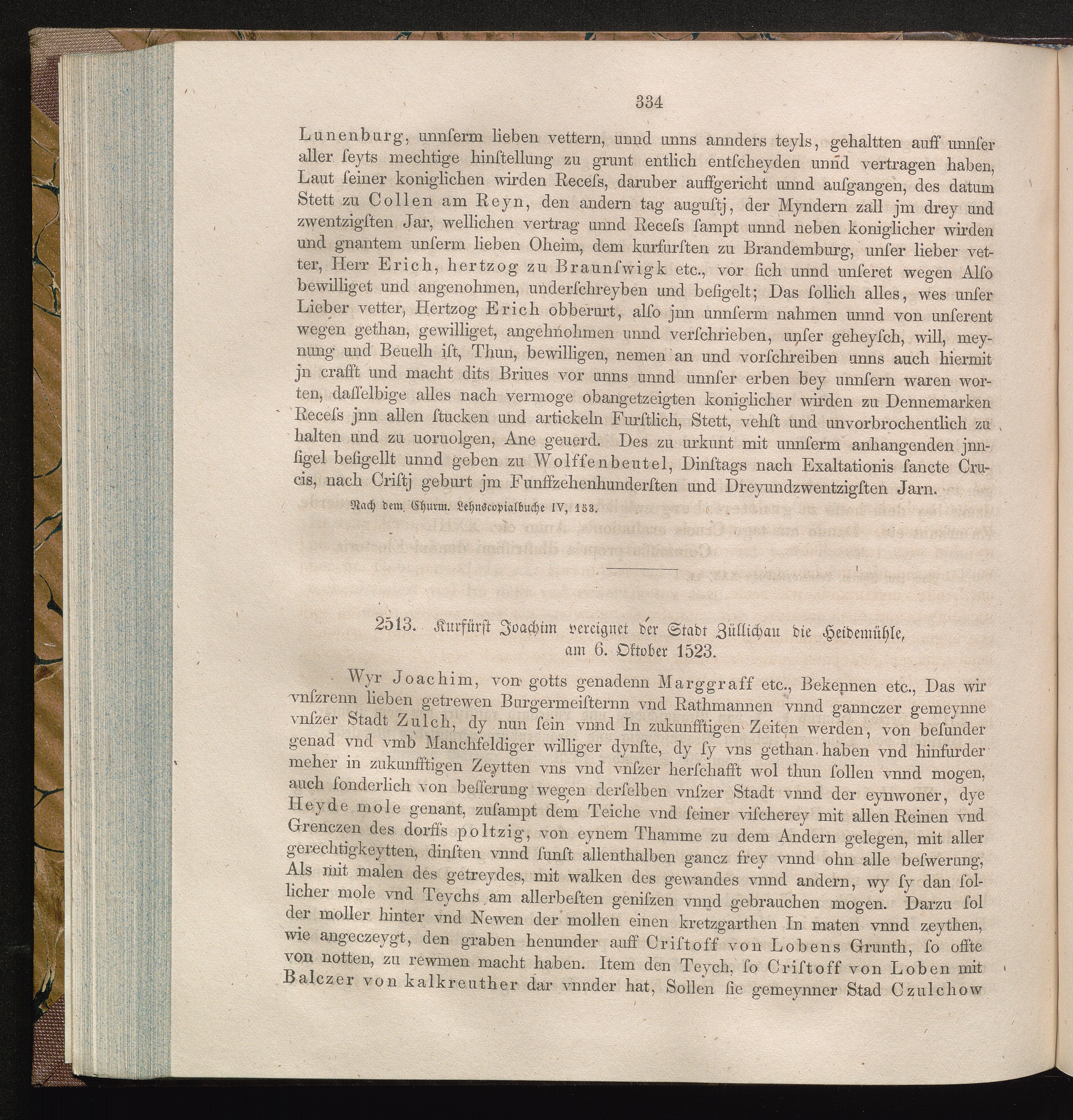2513. Kurfürst Joachim vereignet der Stadt Züllichau die Heidemühle, am 6. Oktober[...]