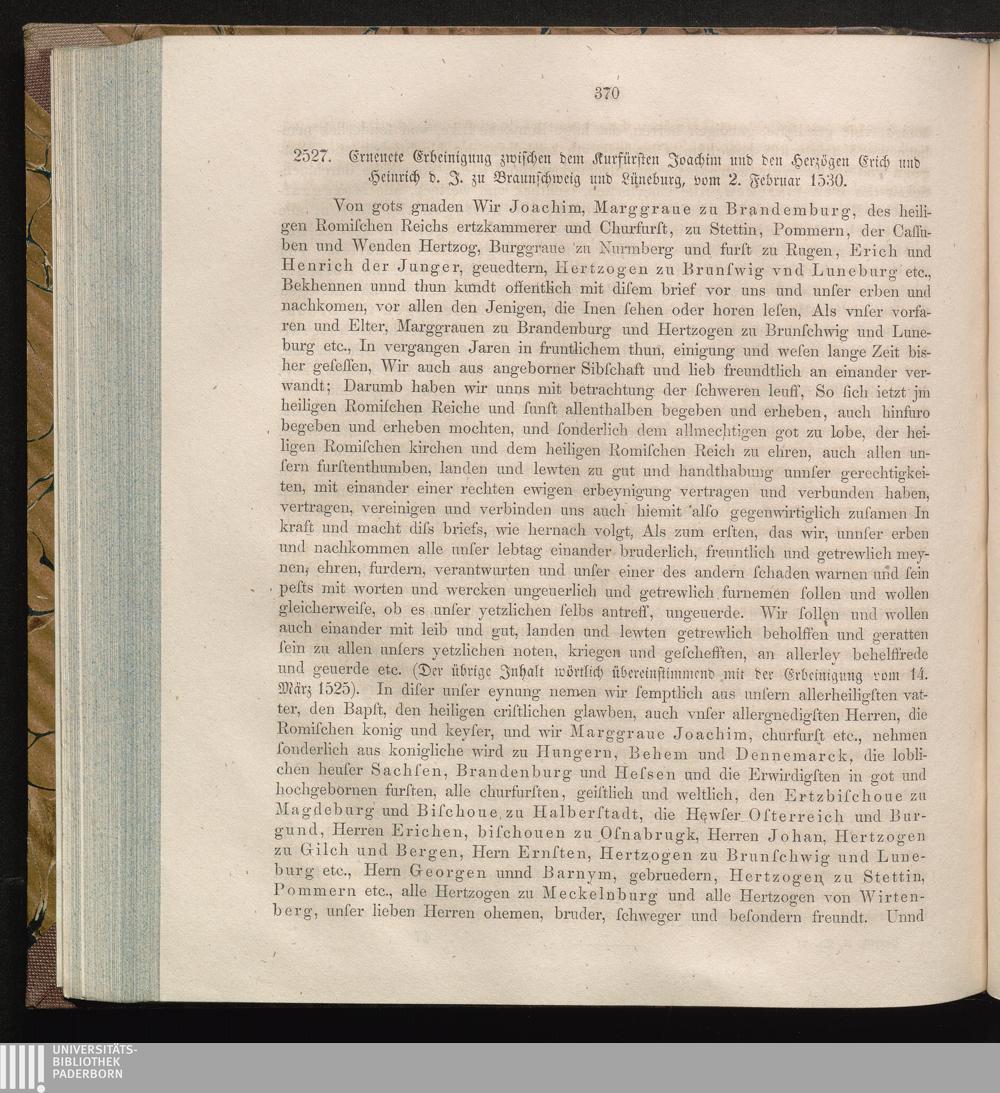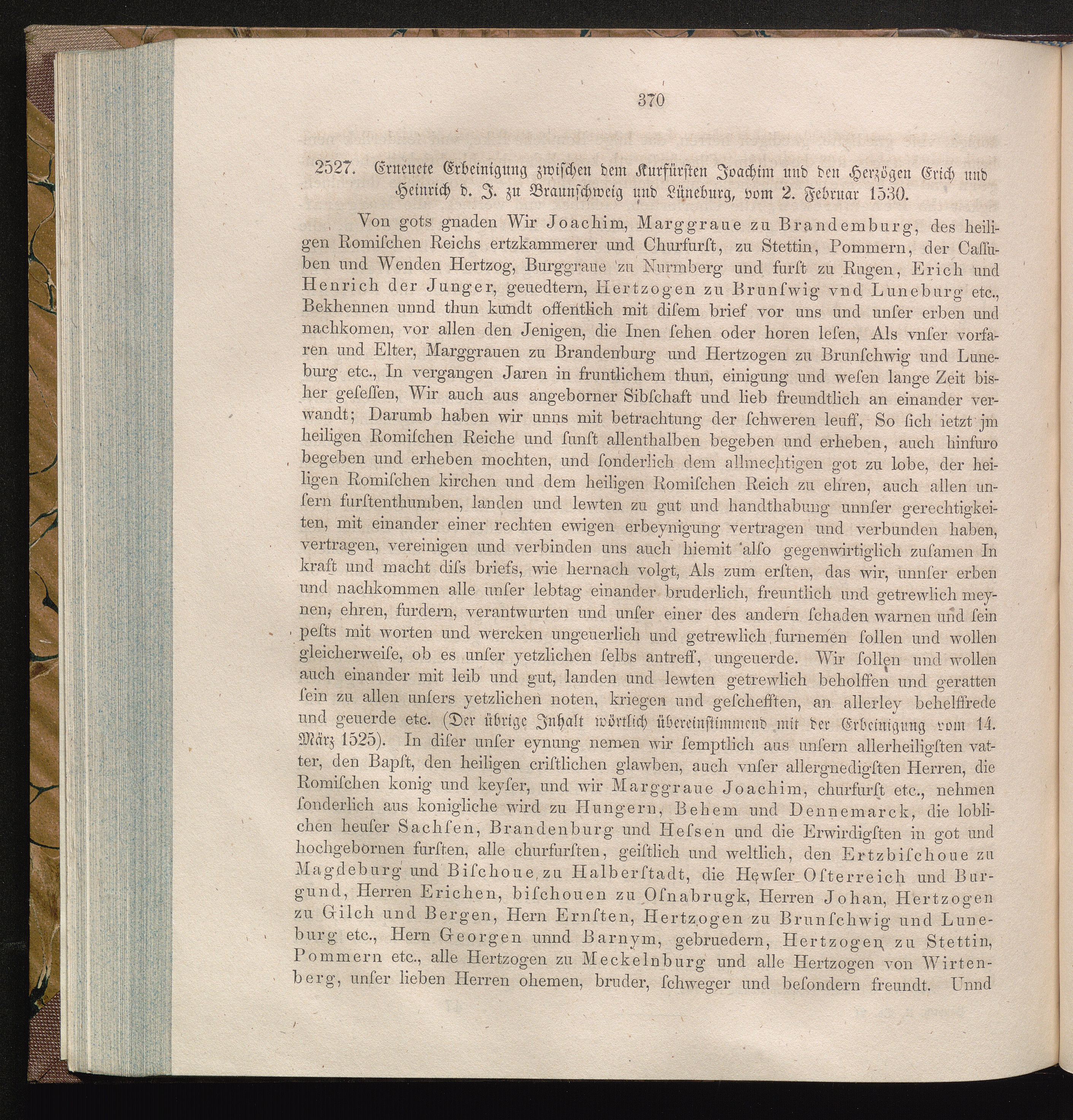 2527. Erneuete Erbeinigung zwischen dem Kurfürsten Joachim und den Herzögen Erich[...]