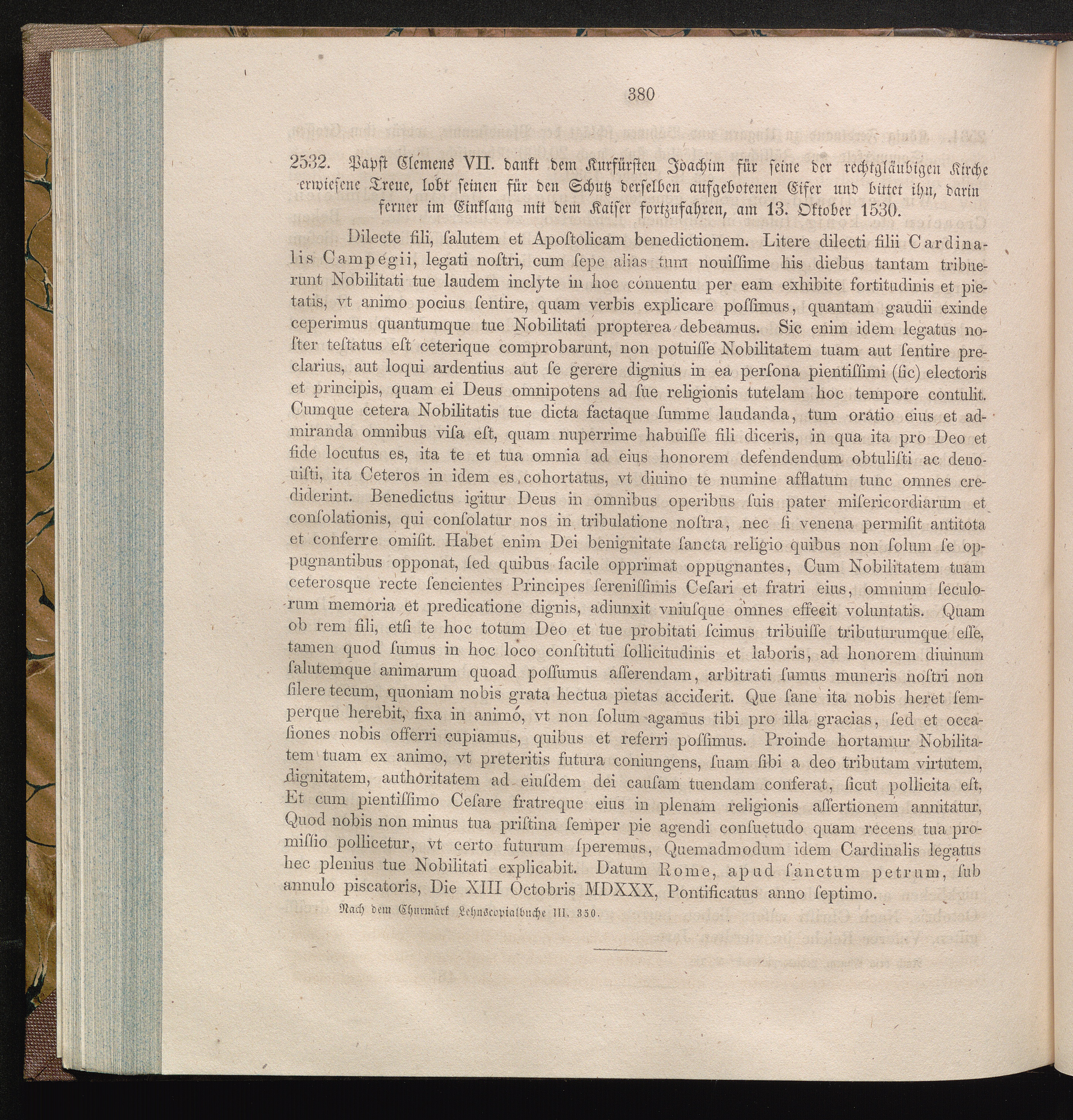 2532. Papst Celemens VII. dankt dem Kurfürsten Joachim für seine der rechtsgläubigen[...]
