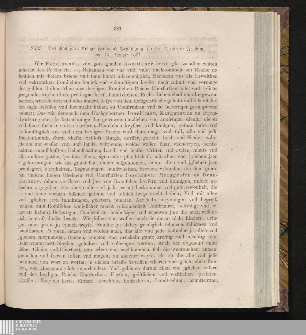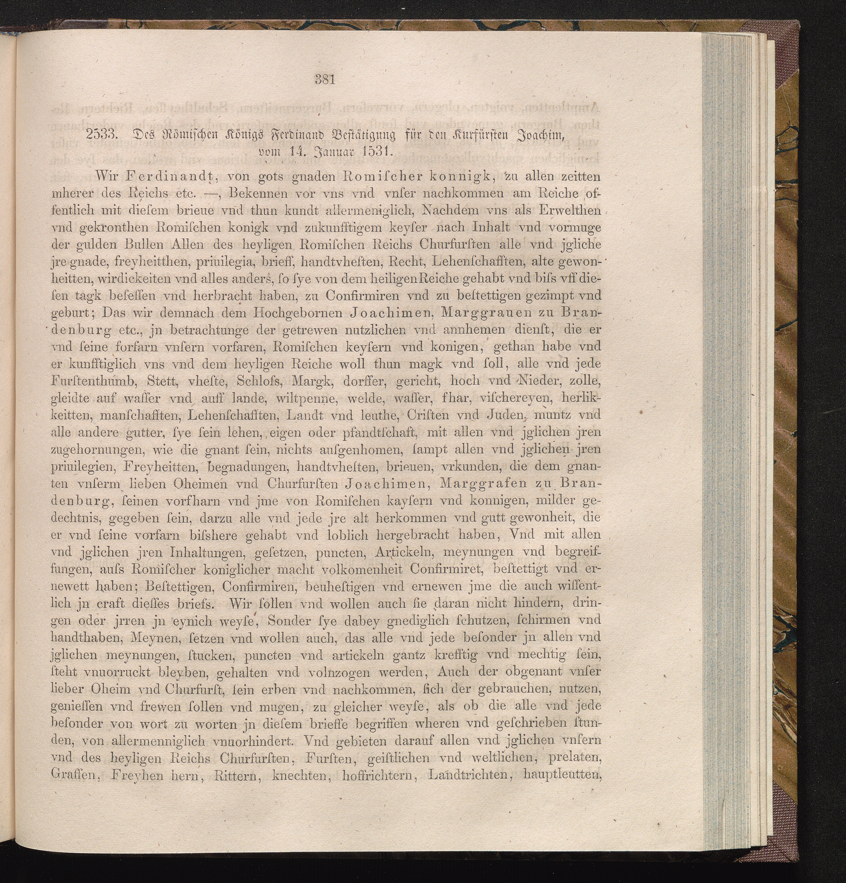 2533. Des Römischen Königs Ferdinand Bestätigung für den Kurfürsten Joachim, vom[...]