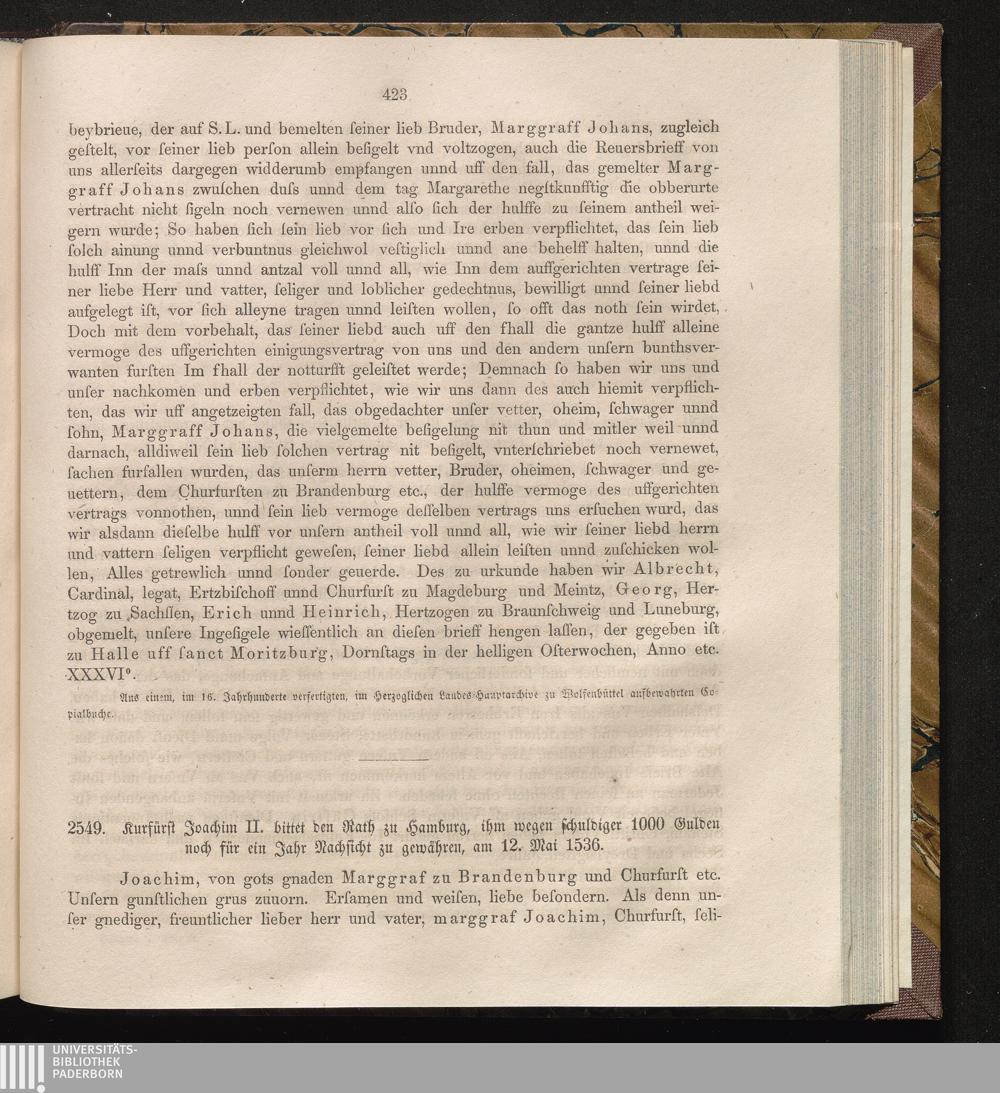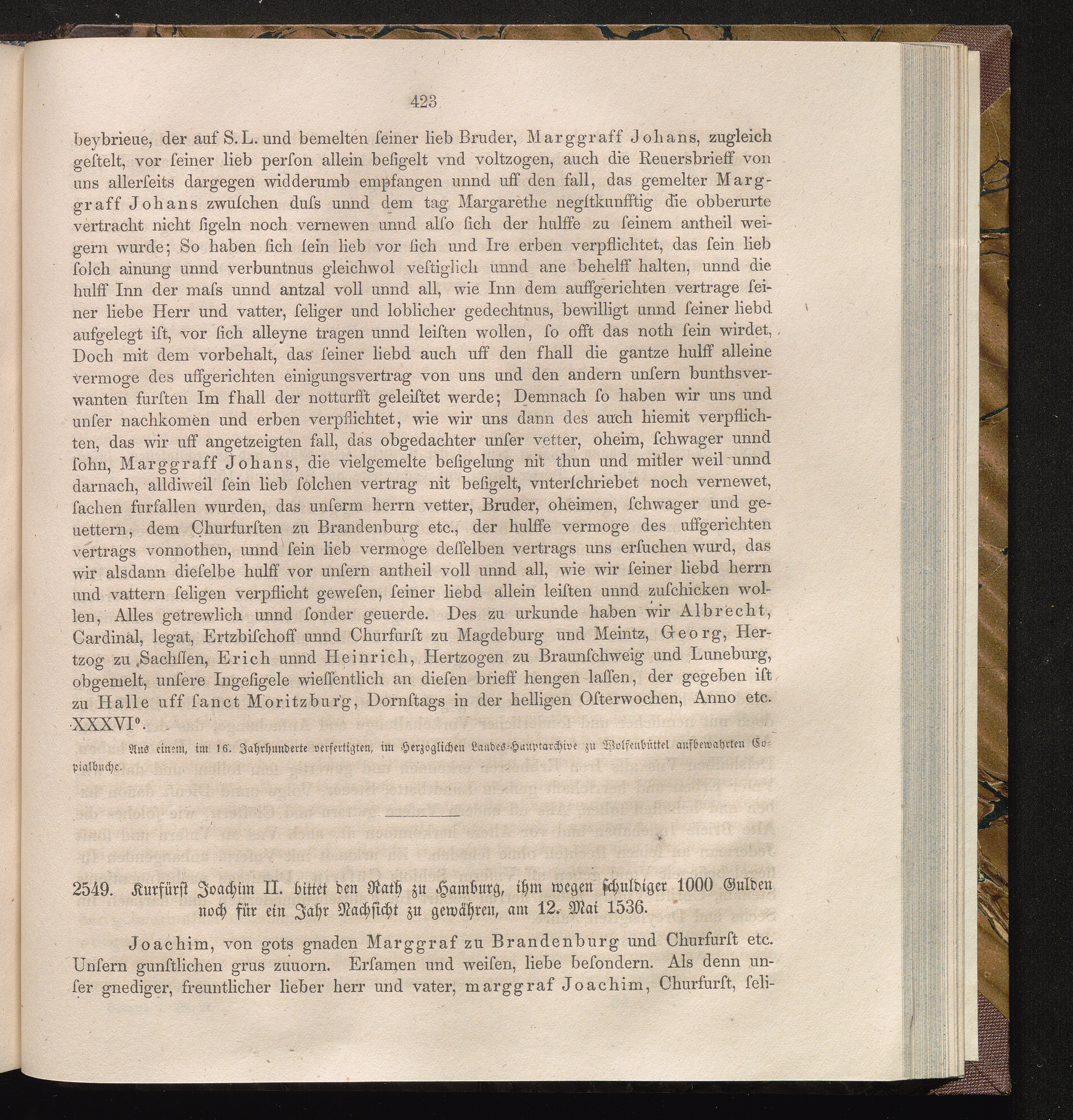 2549. Kurfürst Joachim II. bittet den Rath zu Hamburg, ihm wegen schuldiger 1000[...]