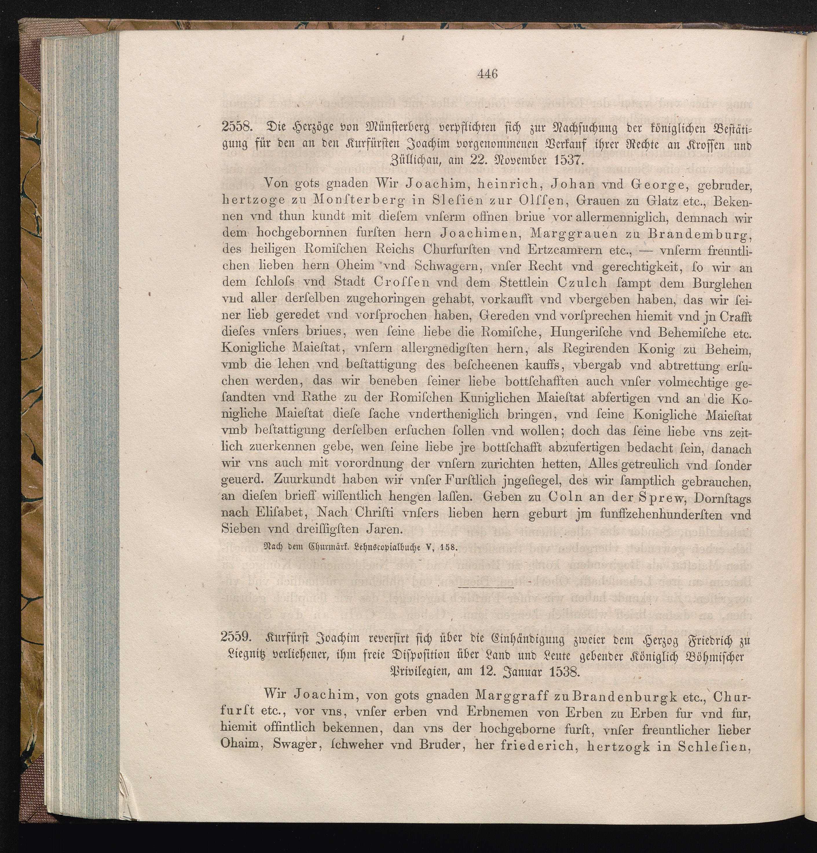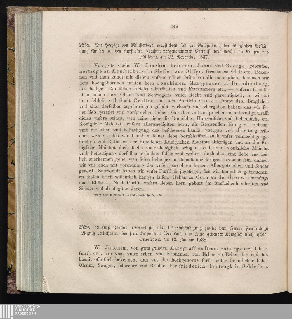 2559. Kurfürst Joachim reversirt sich über die Einhändigung zweier dem Herzog Friedrich[...]