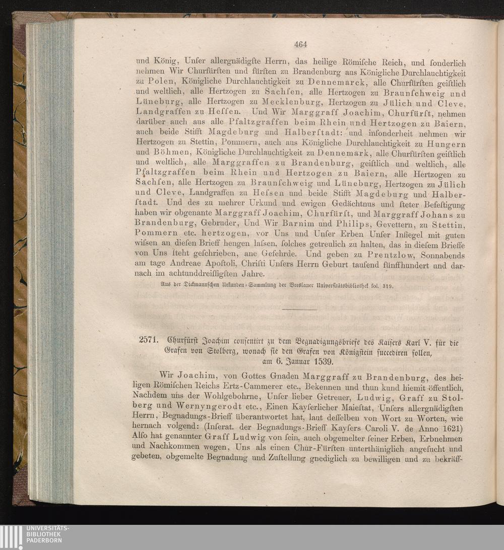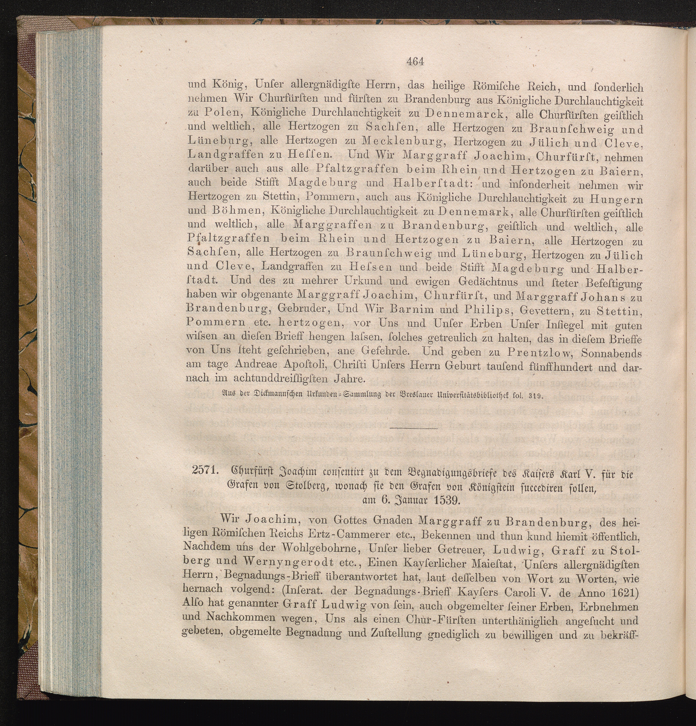 2571. Churfürst Joachim consentirt zu dem Begnadigungsbriefe des Kaisers Karl V.[...]