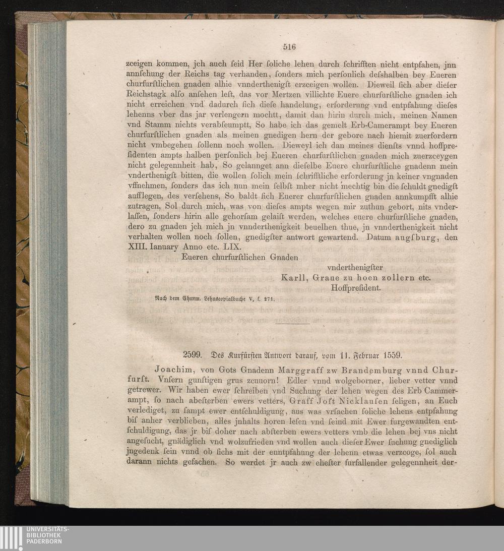 2599. Des Kurfürsten Antwort darauf, vom 11. Februar 1559.