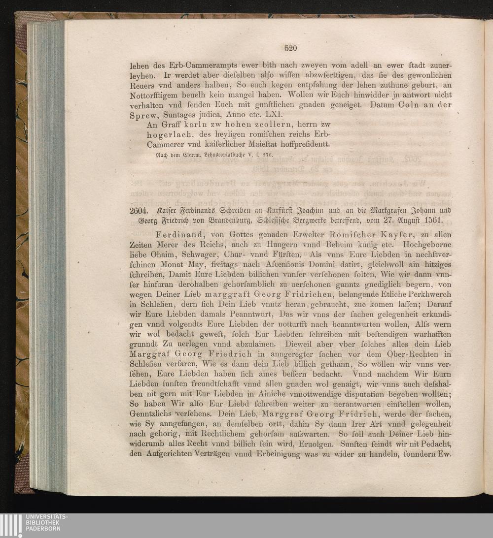 2604. Kaiser Ferdinands Schreiben an Kurfürst Joachim und an die Markgrafen Johann[...]