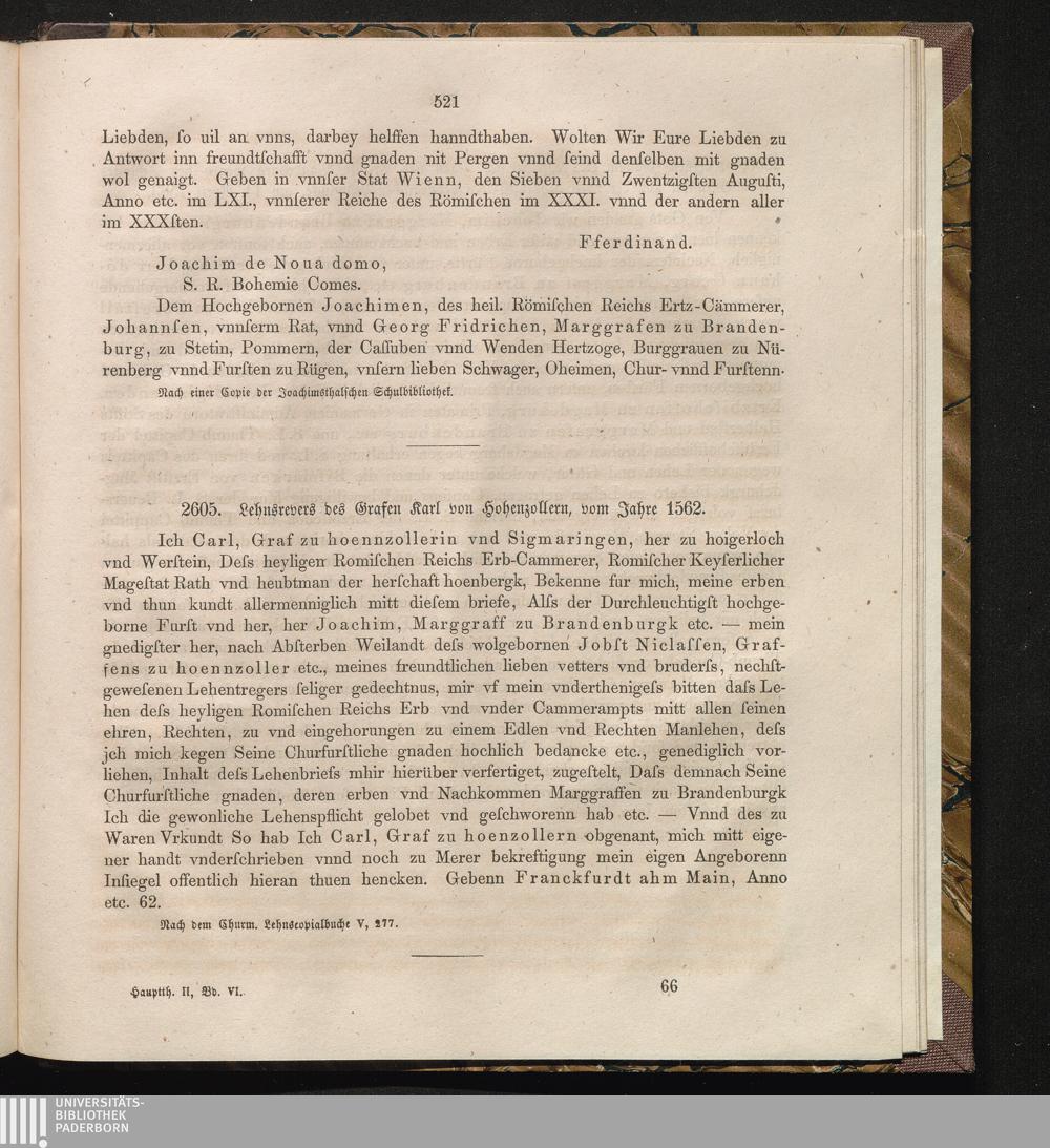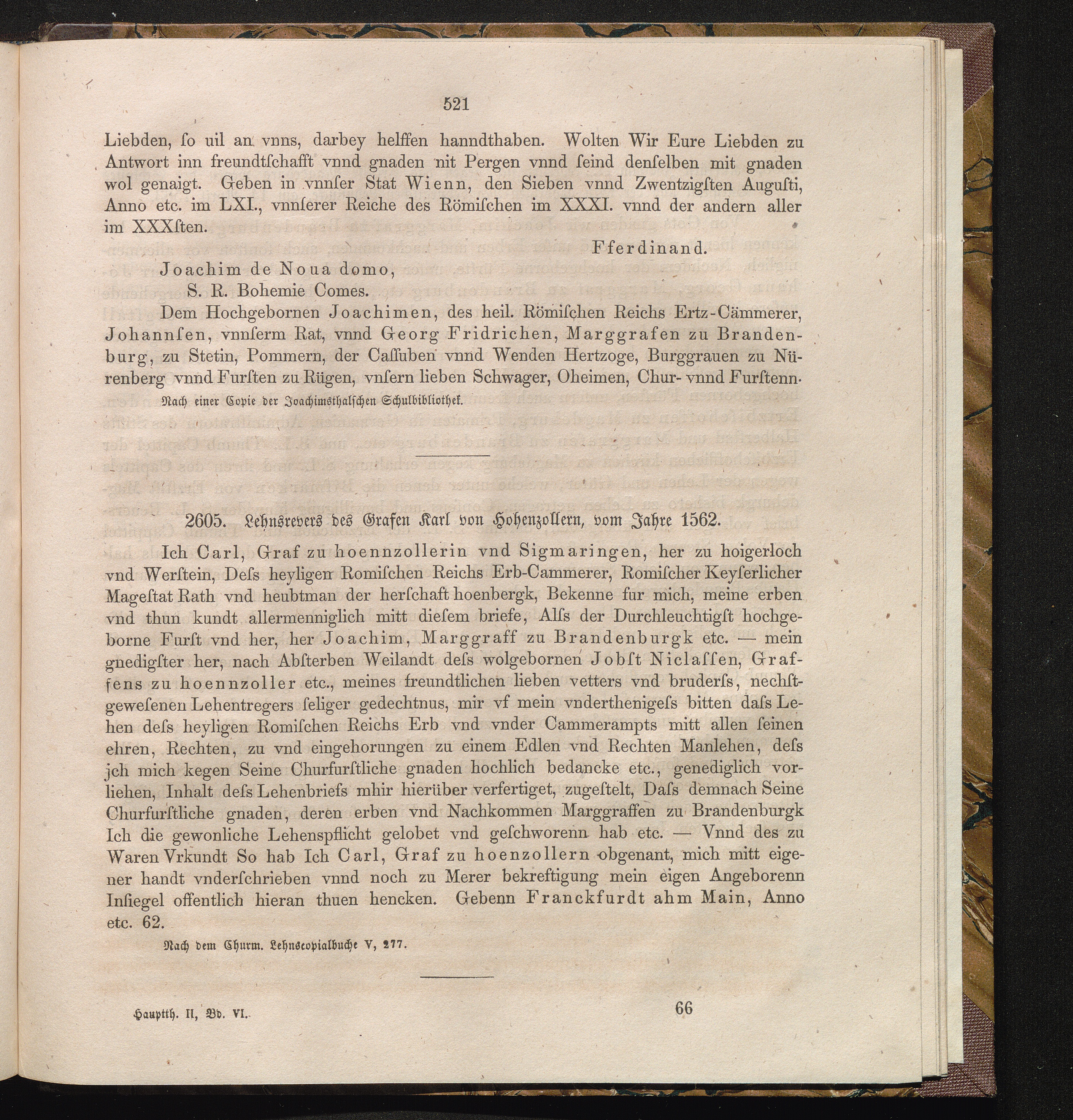 2605. Lehnsrevers des Grafen Karl von Hohenzollern, vom Jahre 1562.