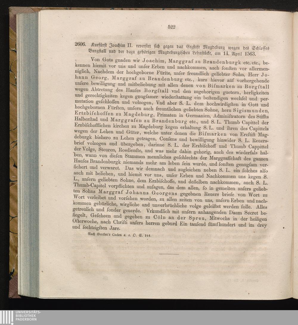 2606. Kurfürst Joachim II. reversirt sich gegen das Erzstift Magdeburg wegen des[...]