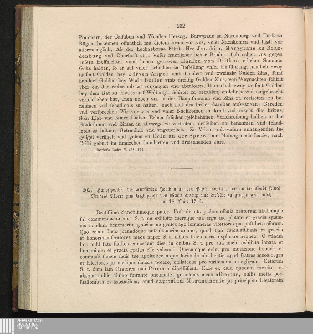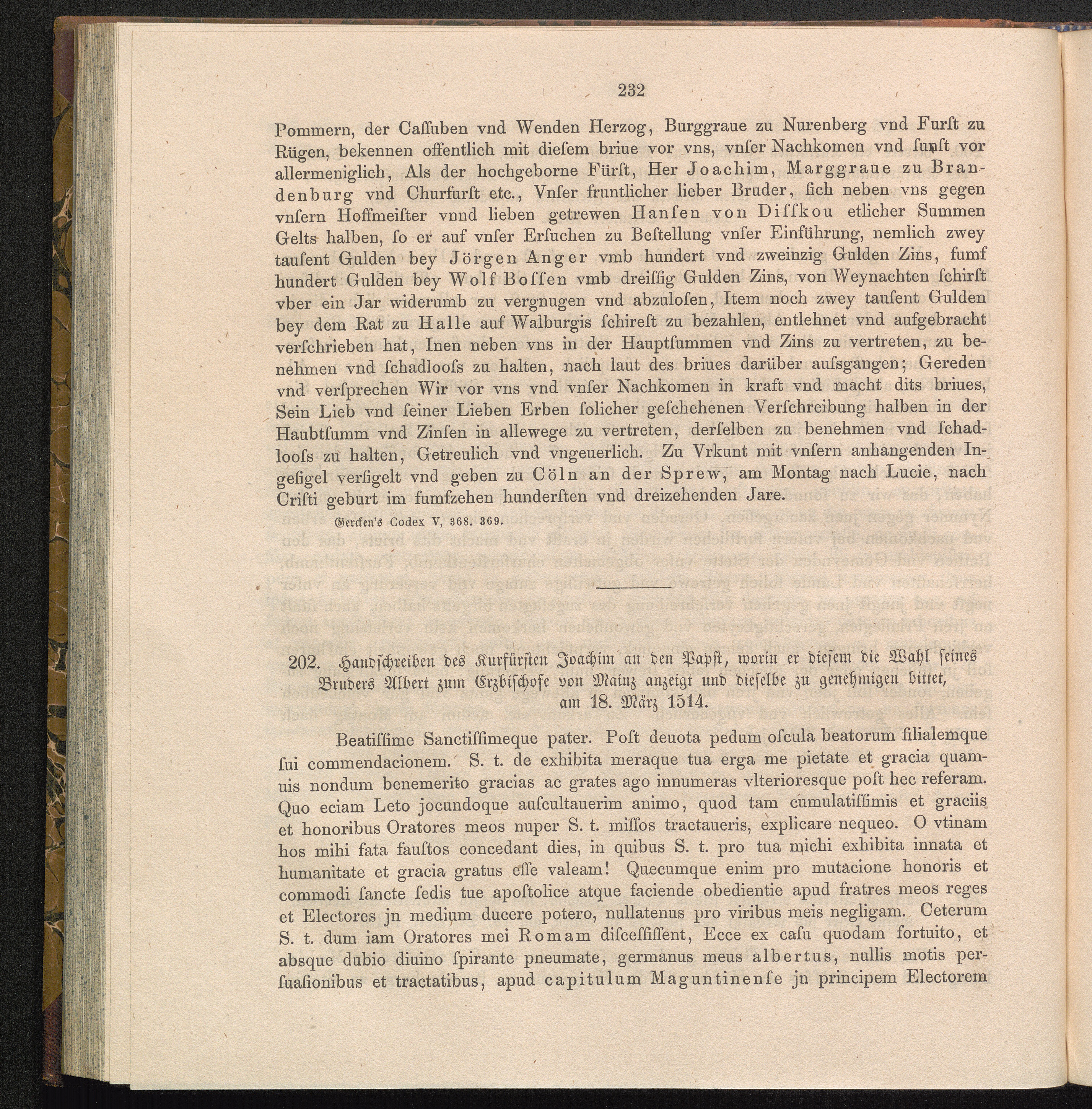 202. Handschreiben des Kurfürsten Joachim an den Papst, worin er diesem die Wahl[...]