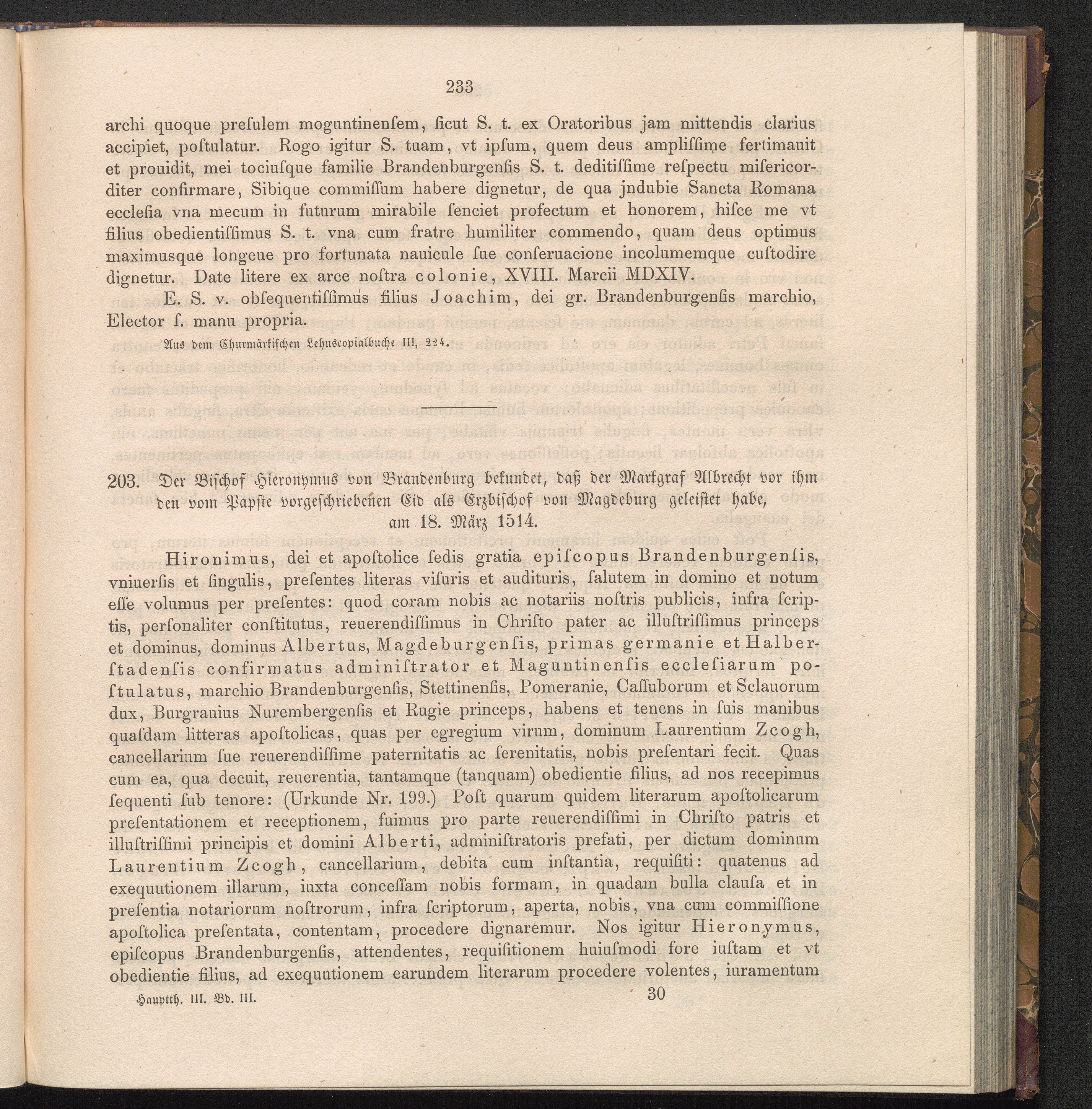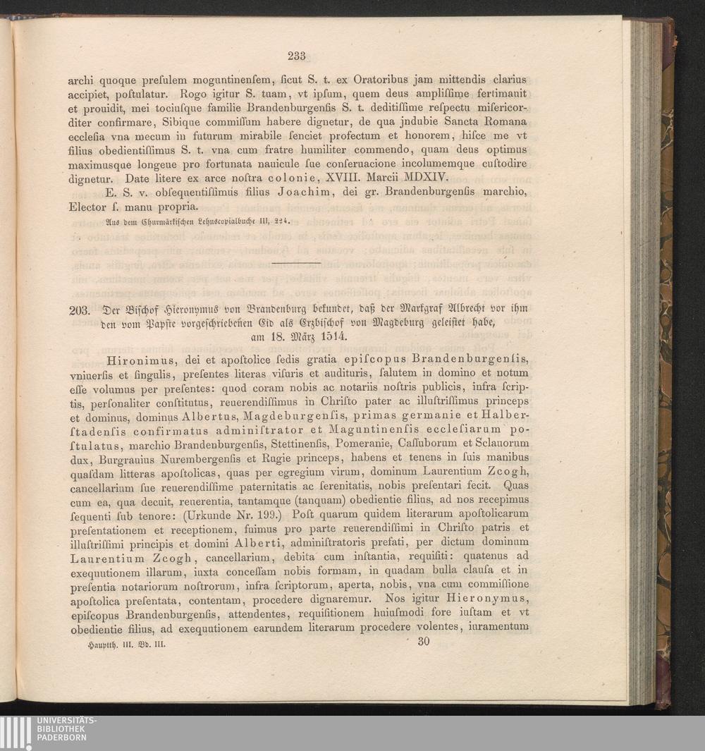 203. Der Bischof Hieronymus von Brandenburg bekundet, daß der Markgraf Albrecht vor[...]