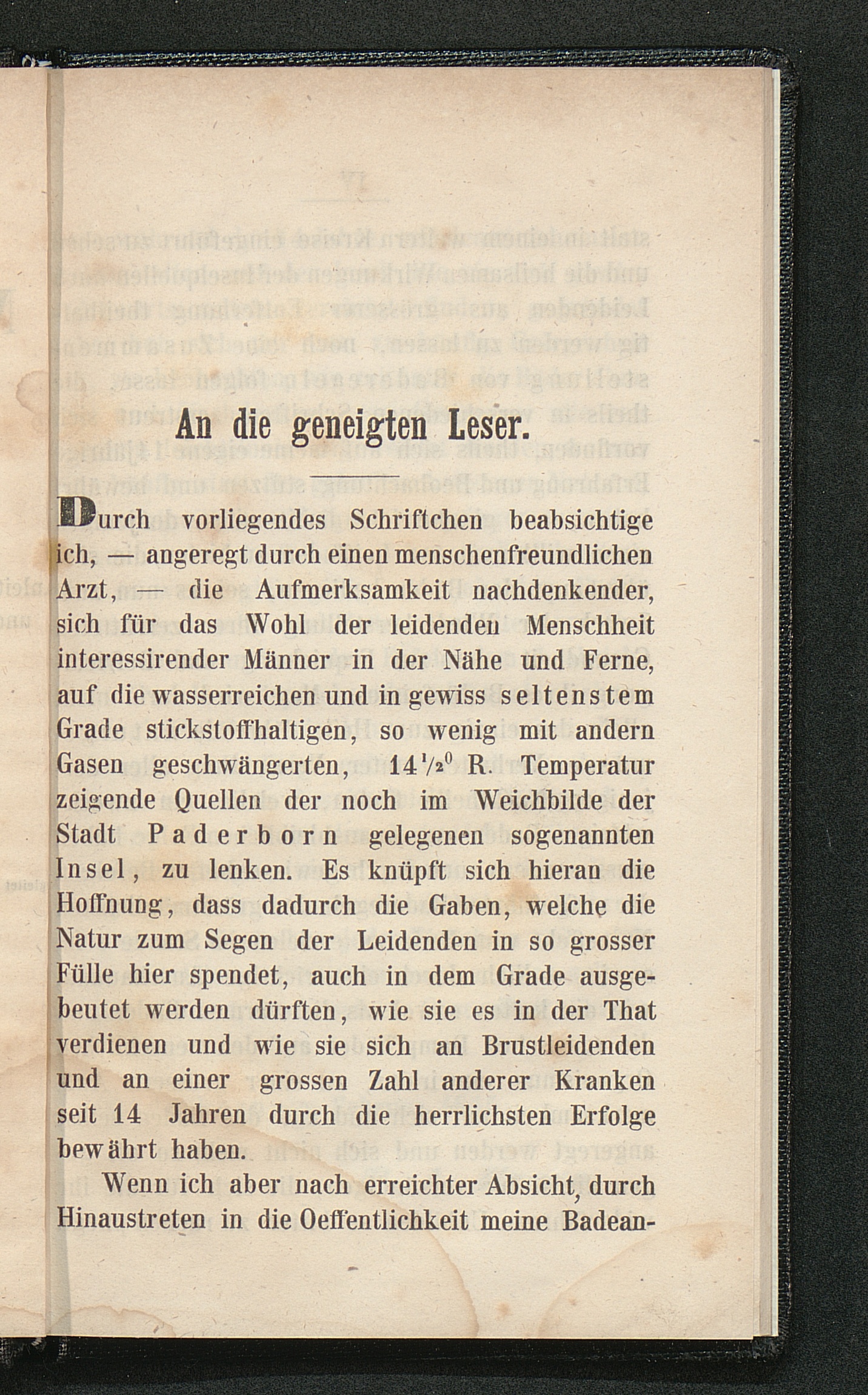 Die stickstoffreichen Mineralquellen auf der Insel zu Paderborn : nebst Anleitung zu einem richtigen Verhalten vor, während und nach dem Bade im Freien, im warmen Bade und im russischen Dampfbade / von F. A. Evers