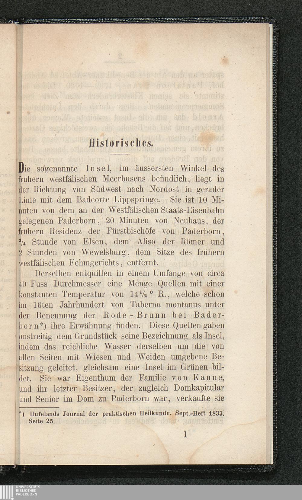 Die stickstoffreichen Mineralquellen auf der Insel zu Paderborn : nebst Anleitung zu einem richtigen Verhalten vor, während und nach dem Bade im Freien, im warmen Bade und im russischen Dampfbade / von F. A. Evers