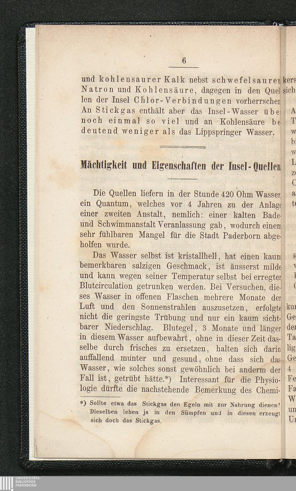 Die stickstoffreichen Mineralquellen auf der Insel zu Paderborn : nebst Anleitung zu einem richtigen Verhalten vor, während und nach dem Bade im Freien, im warmen Bade und im russischen Dampfbade / von F. A. Evers