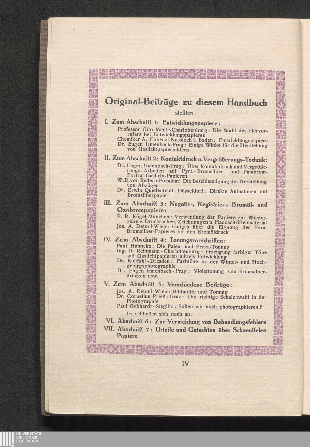 Pala-Handbuch der Entwicklungspapier-Technik unter ausschließlicher Betonung und Verwendung von Papieren der Gust. Schaeuffelenschen Papierfabrik, Heilbronn am Neckar
