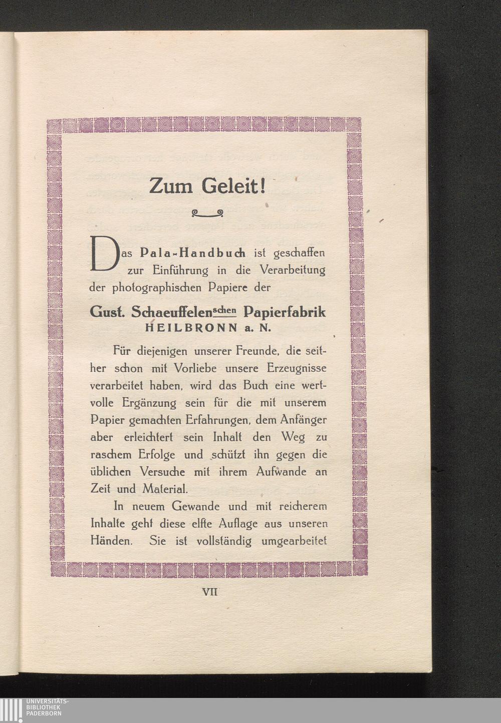 Pala-Handbuch der Entwicklungspapier-Technik unter ausschließlicher Betonung und Verwendung von Papieren der Gust. Schaeuffelenschen Papierfabrik, Heilbronn am Neckar