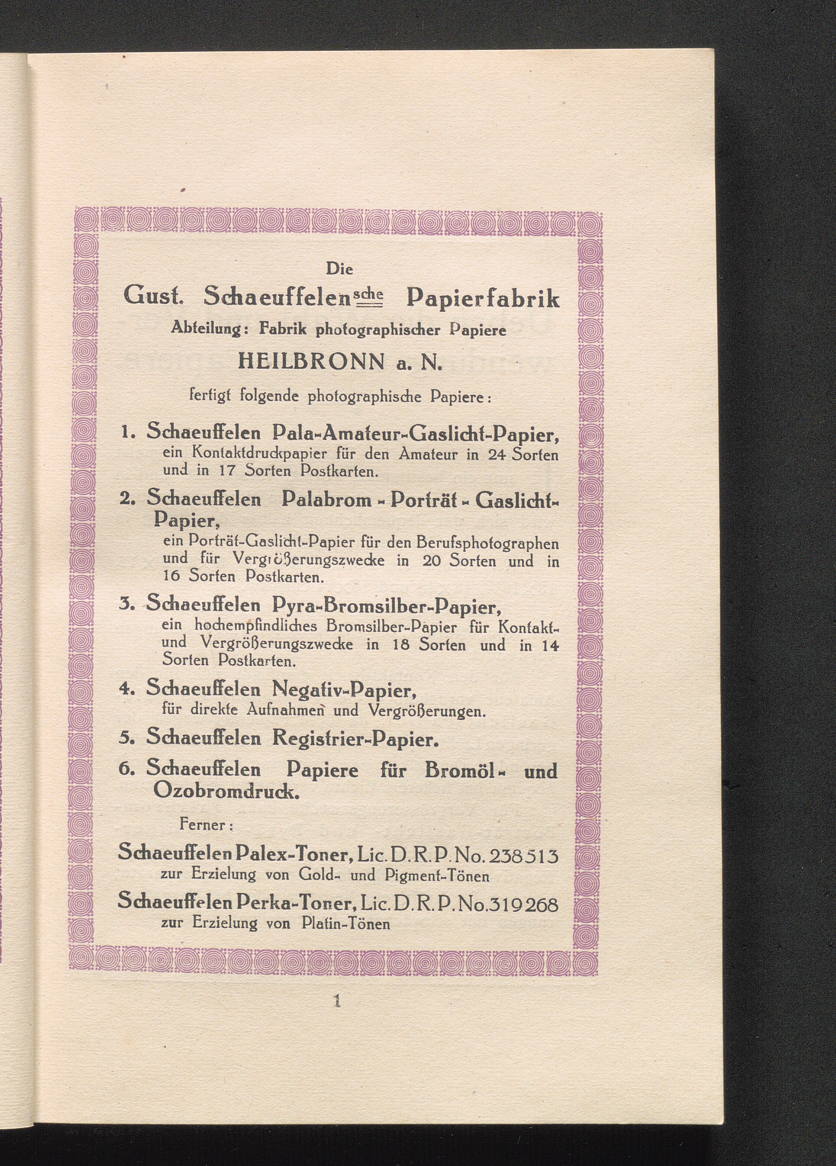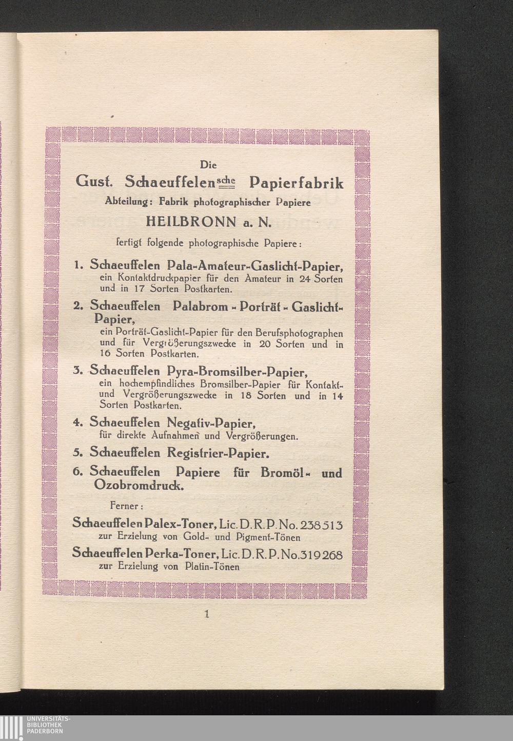 Erzeugnisse der Gust. Schaeuffelenschen Papierfabrik
