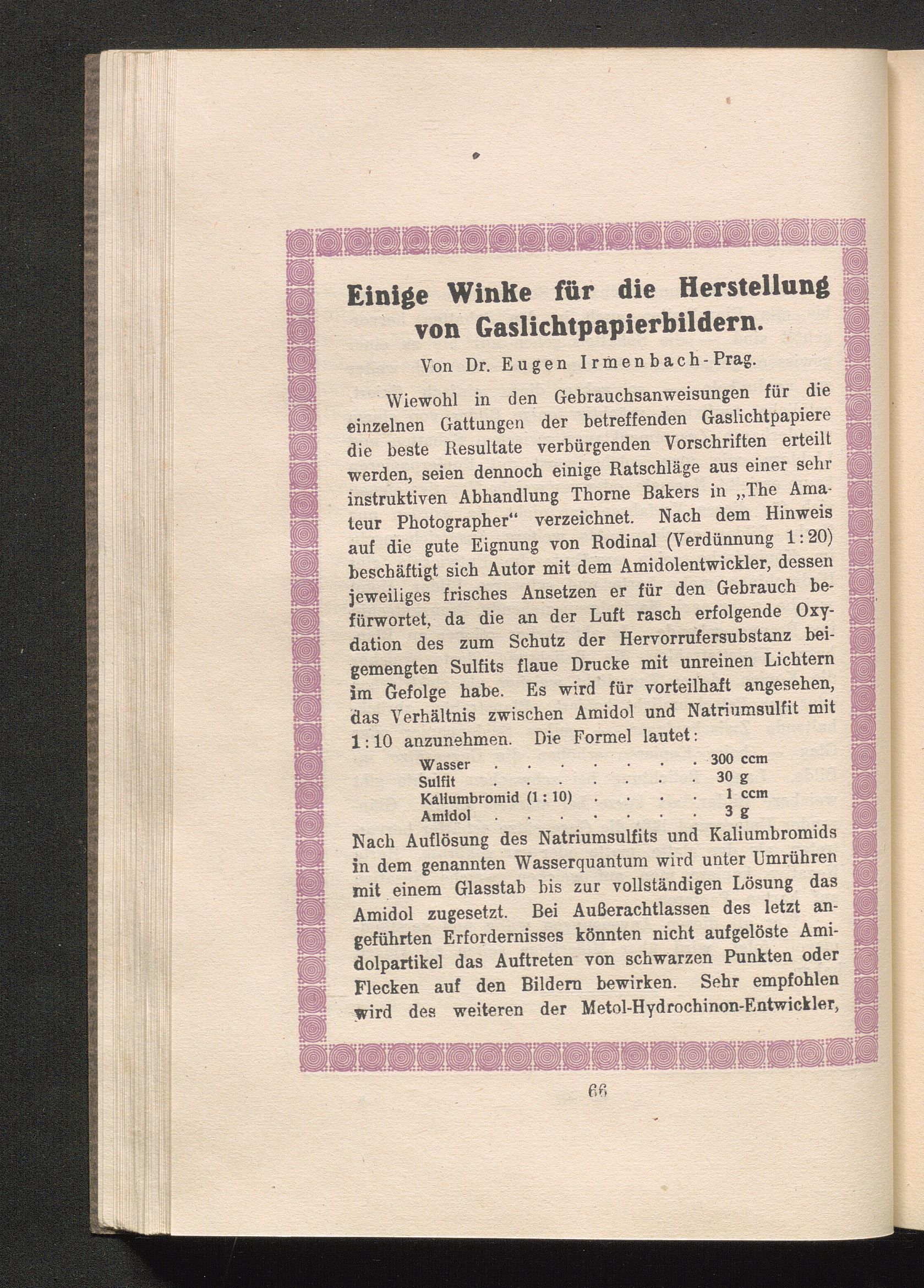 Dr. Eugen Irmenbach - Prag: Einige Winke für die Herstellung von Gaslichtpapierb[...]