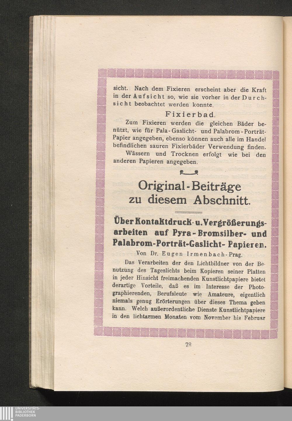 Pala-Handbuch der Entwicklungspapier-Technik unter ausschließlicher Betonung und Verwendung von Papieren der Gust. Schaeuffelenschen Papierfabrik, Heilbronn am Neckar