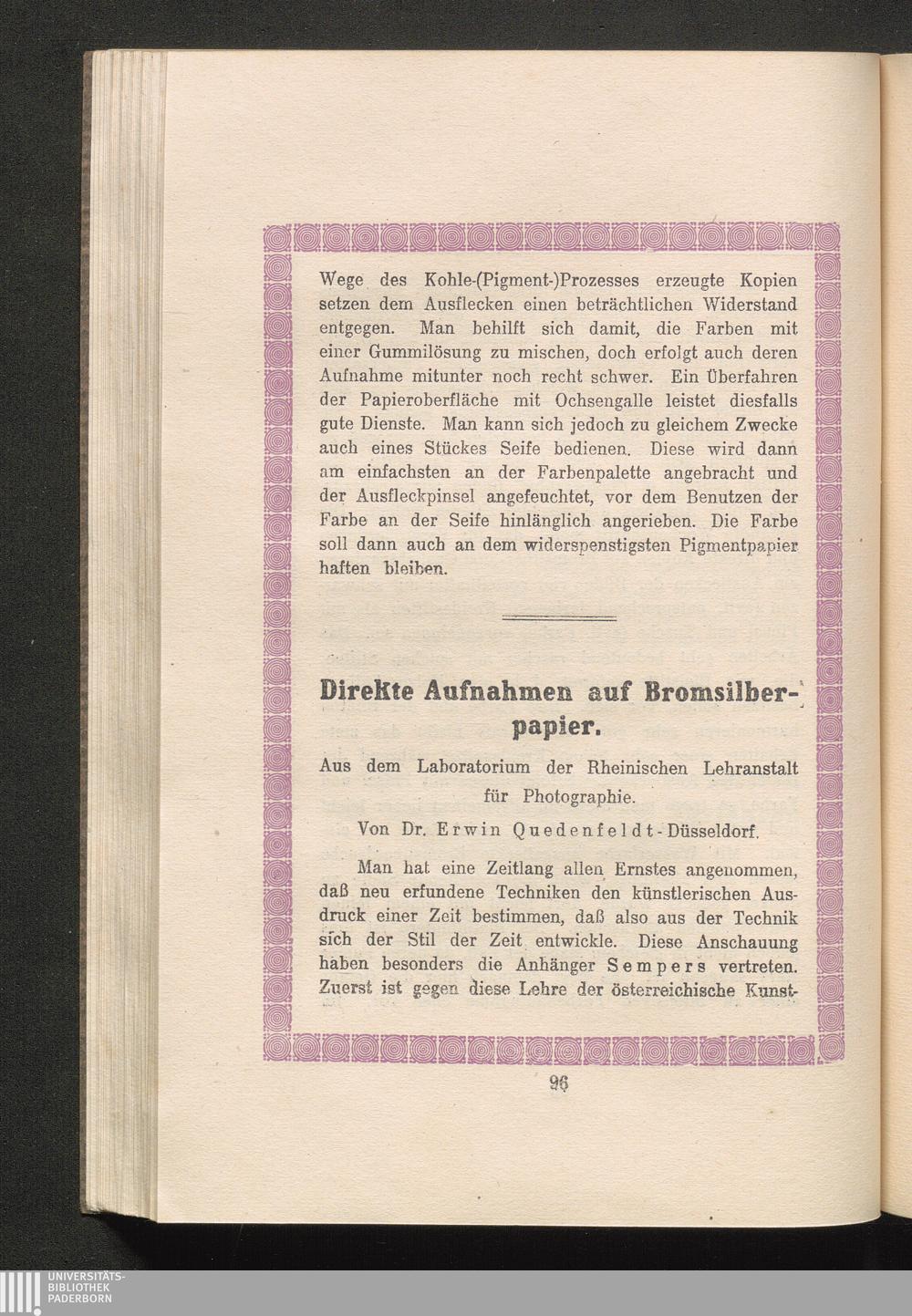 Dr. Erwin Quedenfeldt - Düsseldorf: Direkte Aufnahmen auf Bromsilberpapier