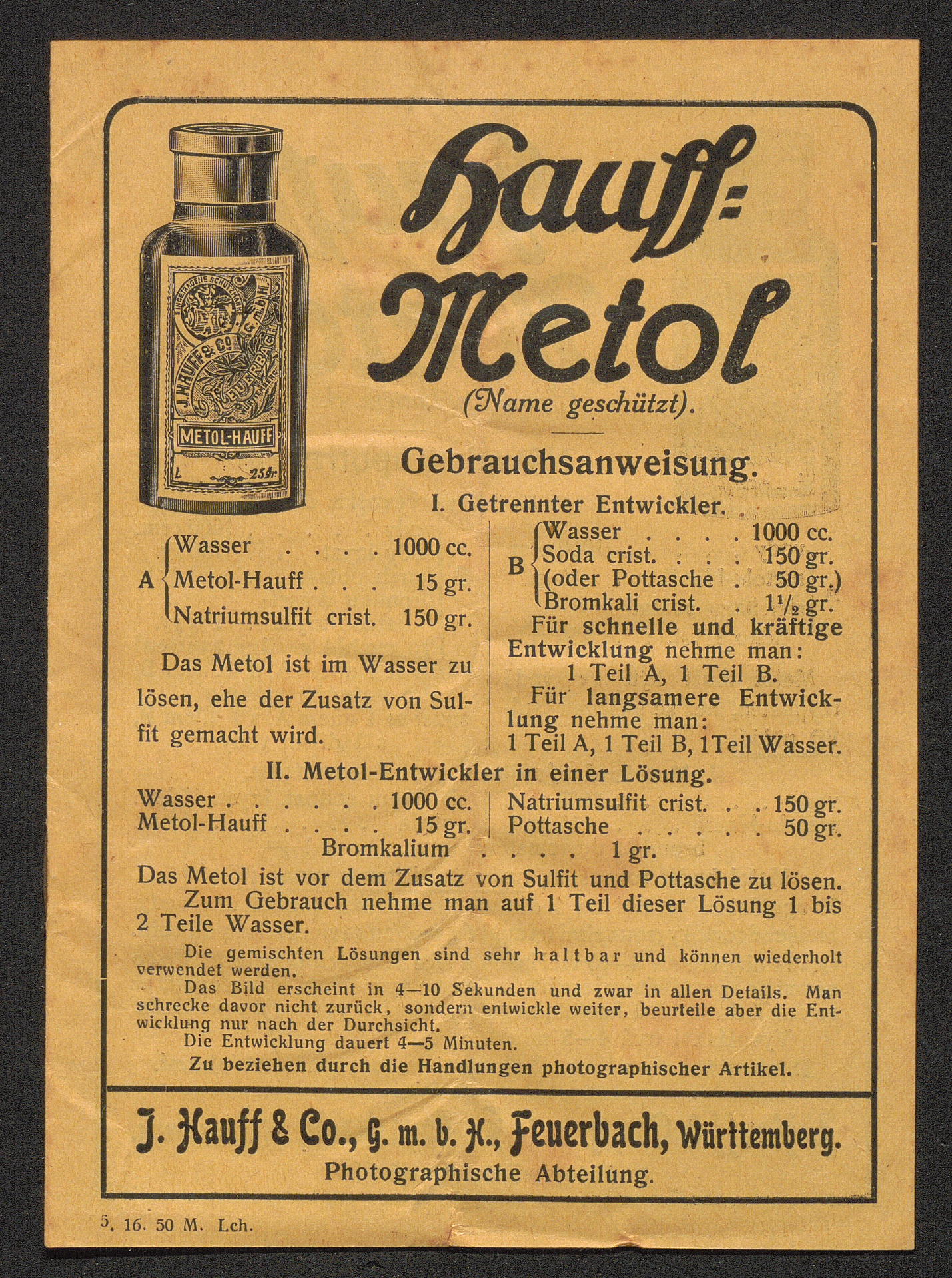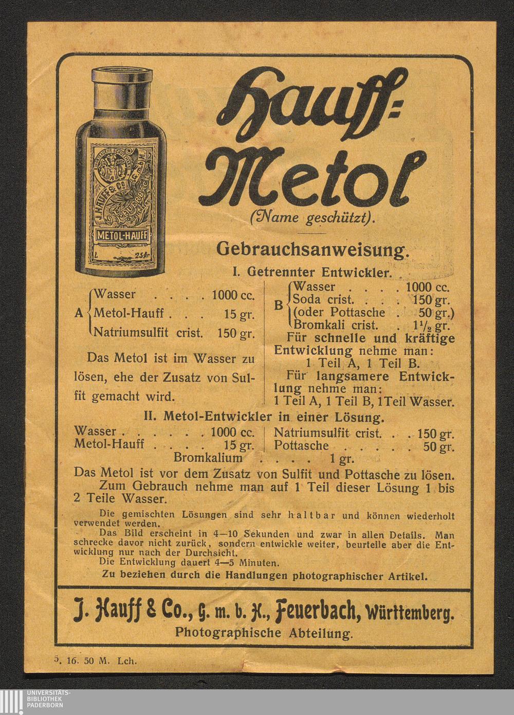 Hauff-Metol Gebrauchsanweisung.