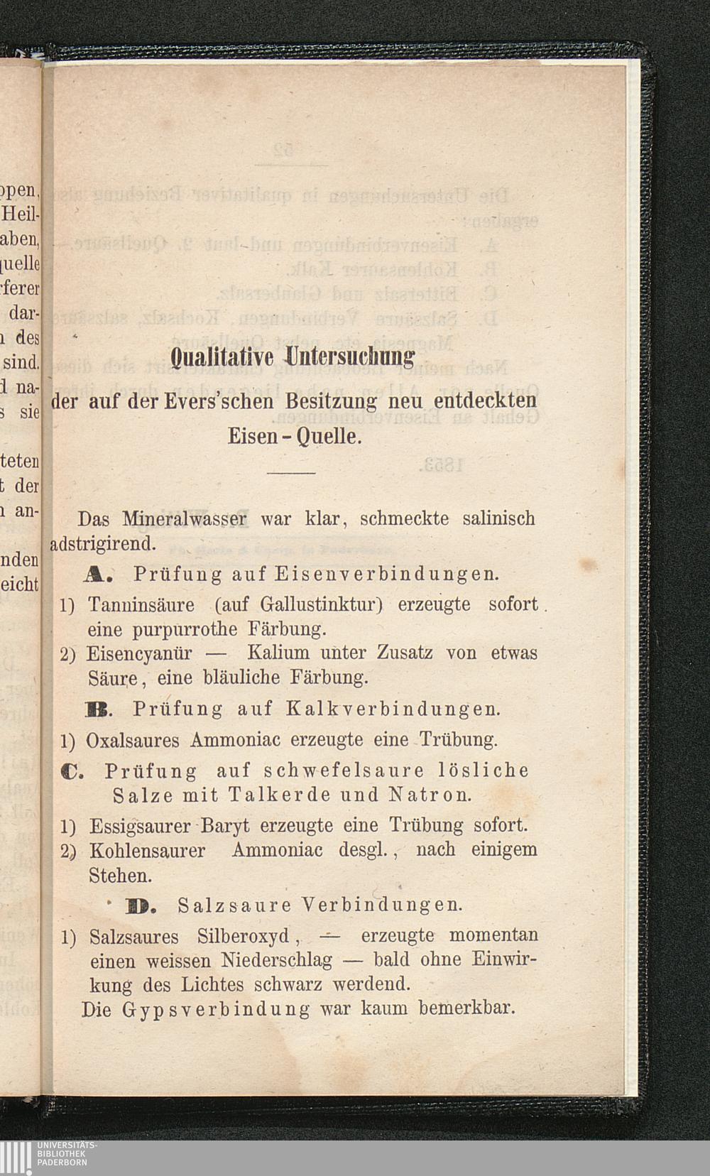 Die stickstoffreichen Mineralquellen auf der Insel zu Paderborn : nebst Anleitung zu einem richtigen Verhalten vor, während und nach dem Bade im Freien, im warmen Bade und im russischen Dampfbade / von F. A. Evers