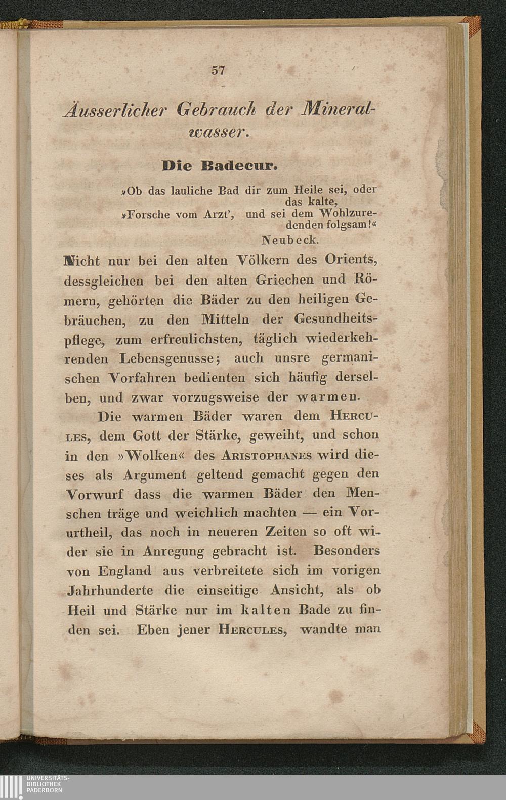 Taschenbuch für die Curgäste Driburg's; oder Anleitung zum äusseren und inneren Gebrauche der Driburger Mineralwasser, der Schwefelschlamm- und Gasbäder und der dabei zu beobachtenden Brunnendiät / von Anton Theobald Brück