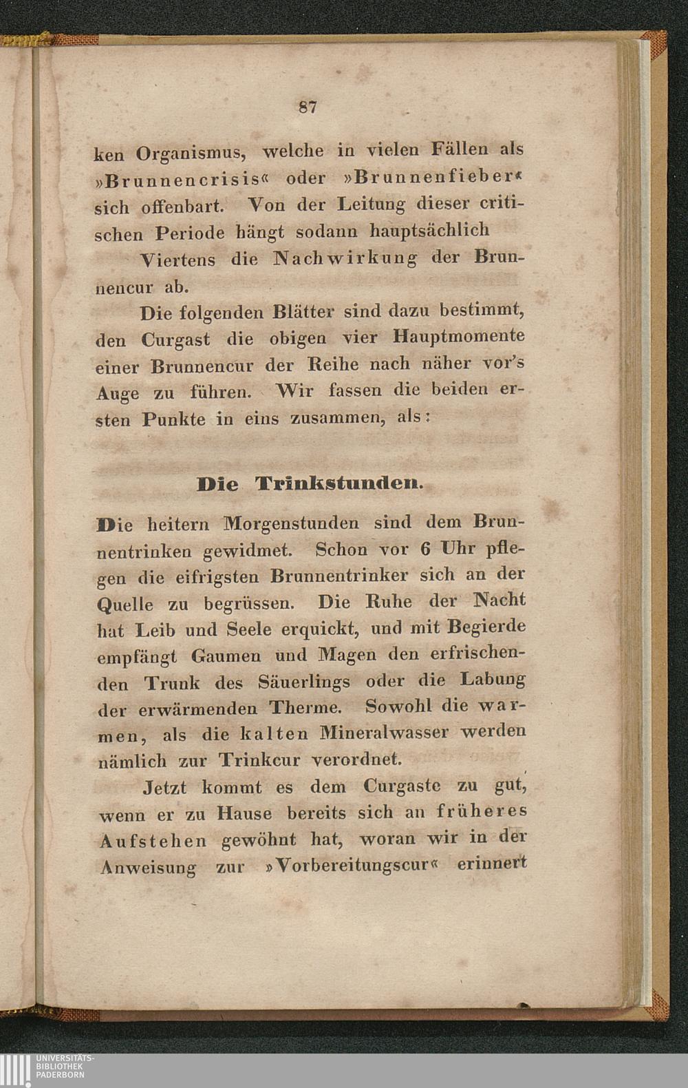 Taschenbuch für die Curgäste Driburg's; oder Anleitung zum äusseren und inneren Gebrauche der Driburger Mineralwasser, der Schwefelschlamm- und Gasbäder und der dabei zu beobachtenden Brunnendiät / von Anton Theobald Brück