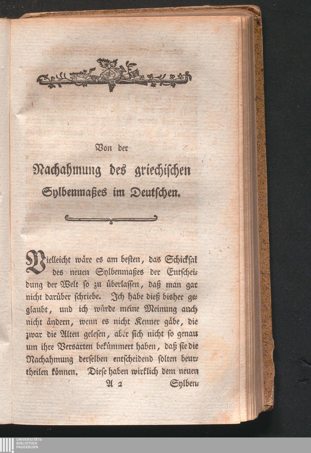 Von der Nachahmung des griechischen Sylbenmaßes im Deutschen.