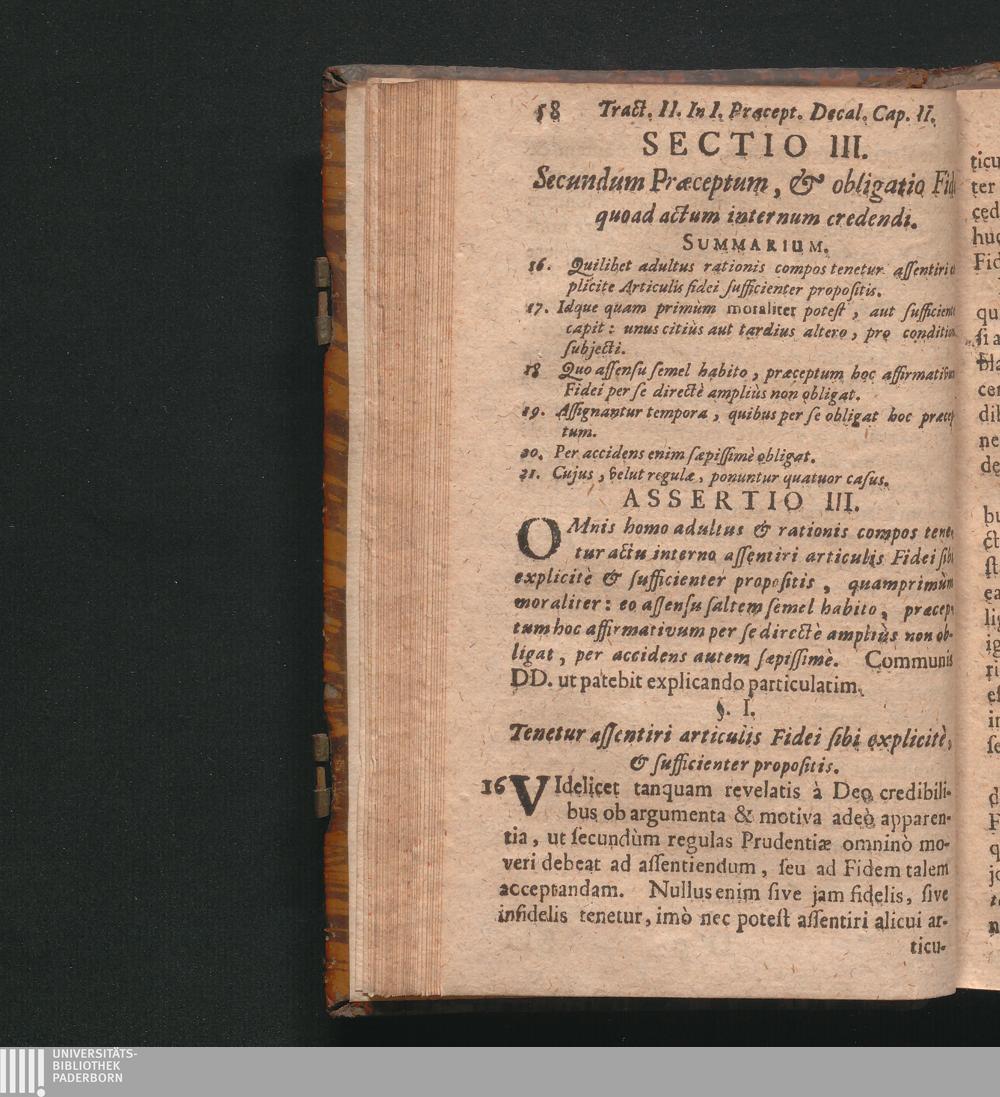 Sectio III. Secundum Præceptum, & obligatio Fidei quoad actum internum credenti.