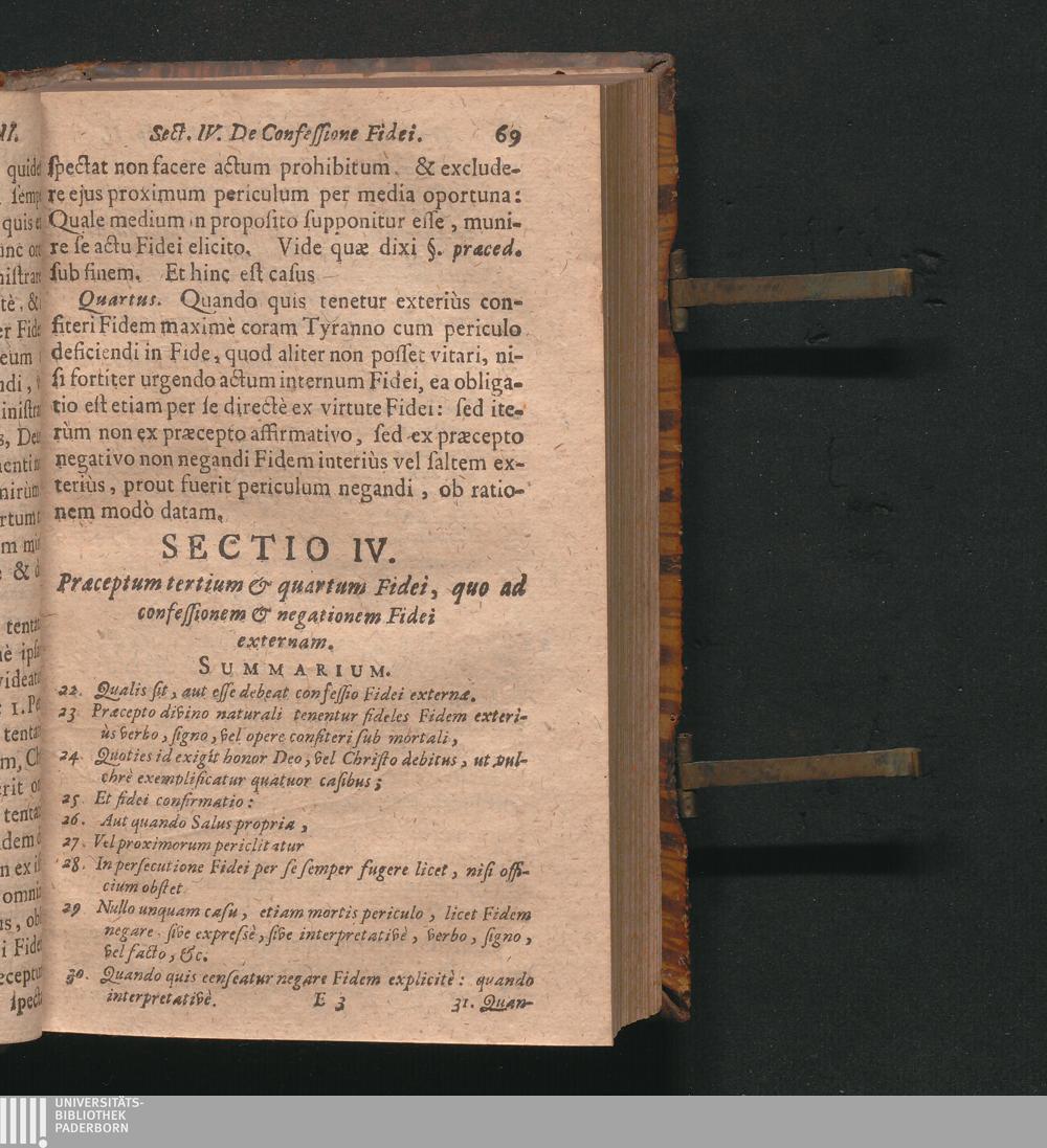 Sectio IV. Præceptum tertium quartum Fidei, quo ad confessionem & negationem Fidei[...]
